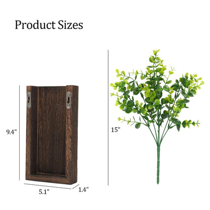 CypherX Wood Wall Planter with Artificial Eucalyptus Set of 2, Farmhouse Wall Decor for Living Room Bathroom Bedroom Kitchen, Wooden Pocket Wall Vases for Fake Plants Greenery and Dried Flowers