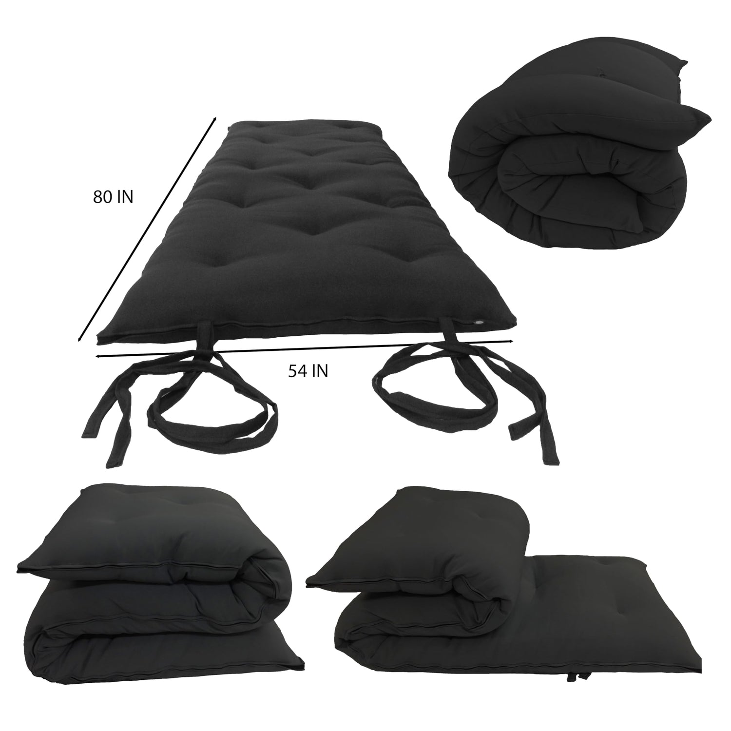 D&D Futon Furniture Full Size Black Traditional Japanese Floor Futon Mattresses 80 x 54 x 3, Foldable Cotton Cushion Mats, Yoga, Meditation