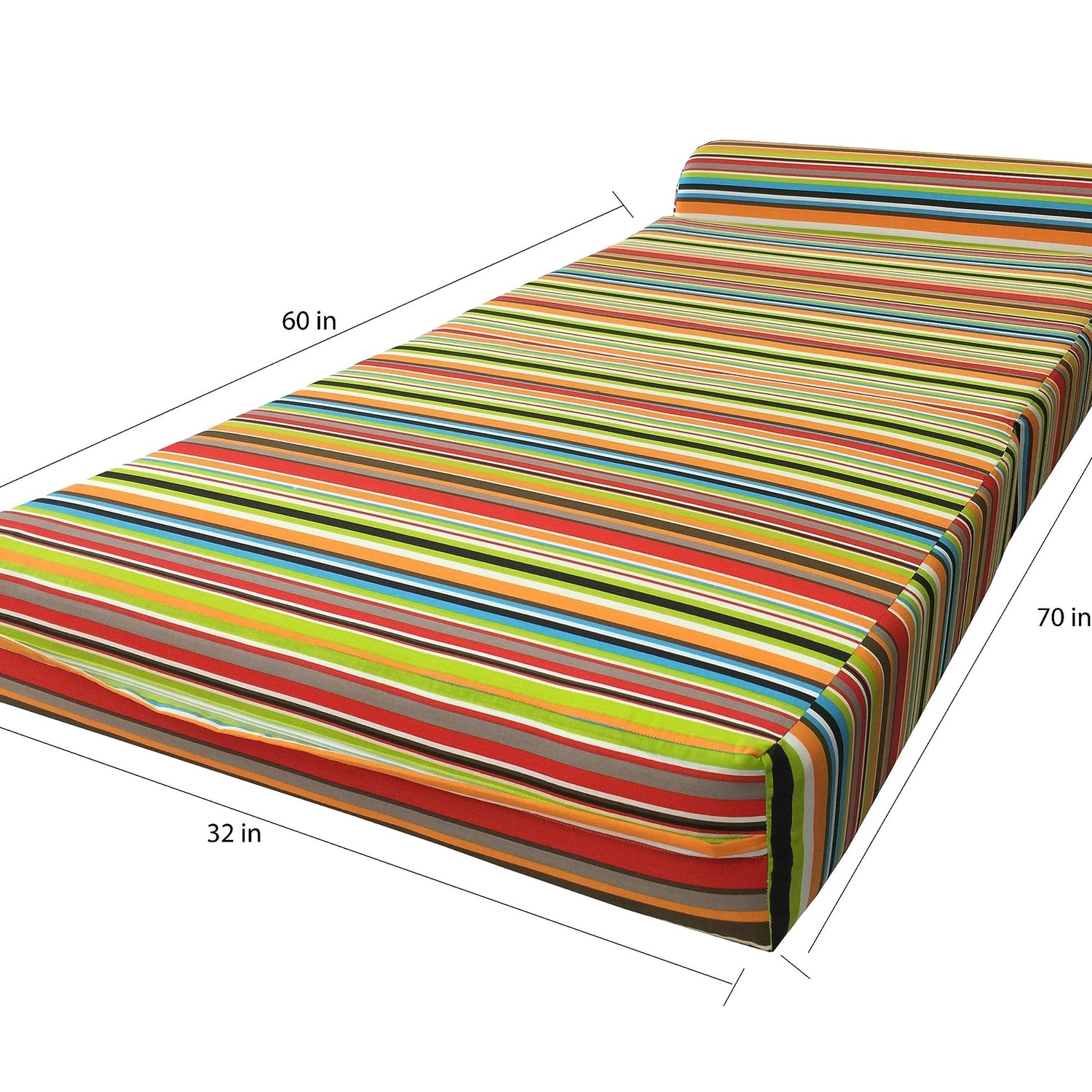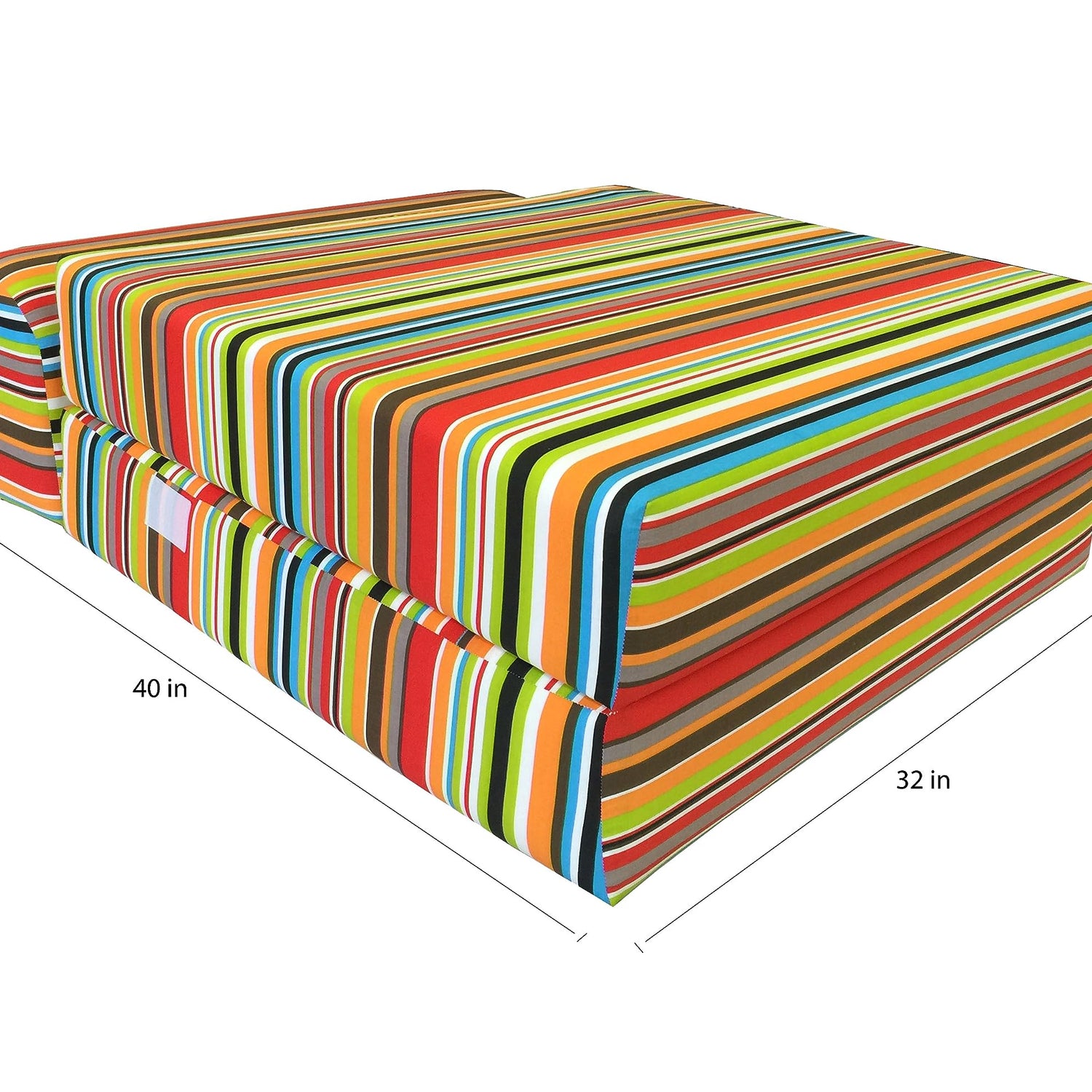 D&D Futon Furniture Multi-Color Striped Sleeper Chair Folding Foam Bed 70x32x6, Studio Guest Foldable Chair Bed, Sofa, Couch, High Density Foam 1.8 Pounds