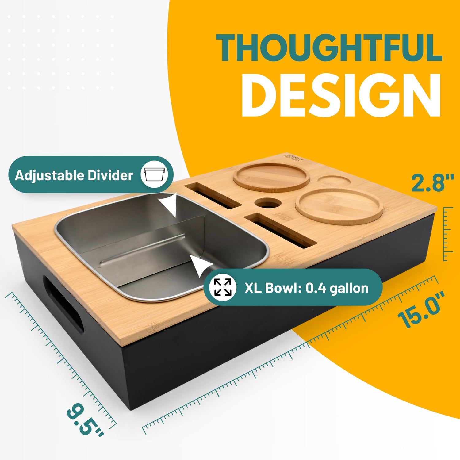 - Large Snack Bowl: Includes adjustable, food-safe grade 304 stainless steel bowl with divider for personalized snack portions. The couch cup holder tray ensures a tidy and customized snacking experience.