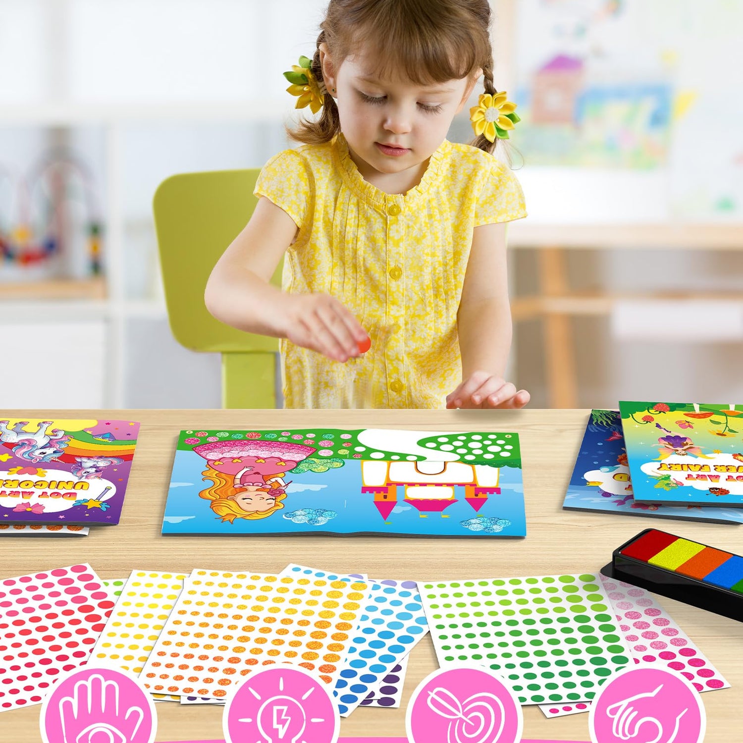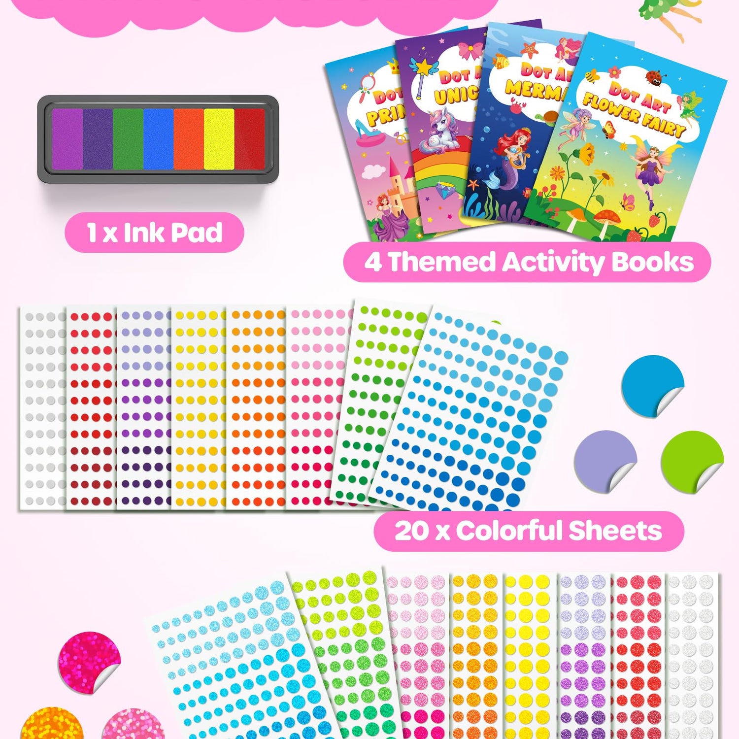 Details: D-FantiX My Storybook Art Kit & Dot Art Sticker Book Kits with Ink Pad