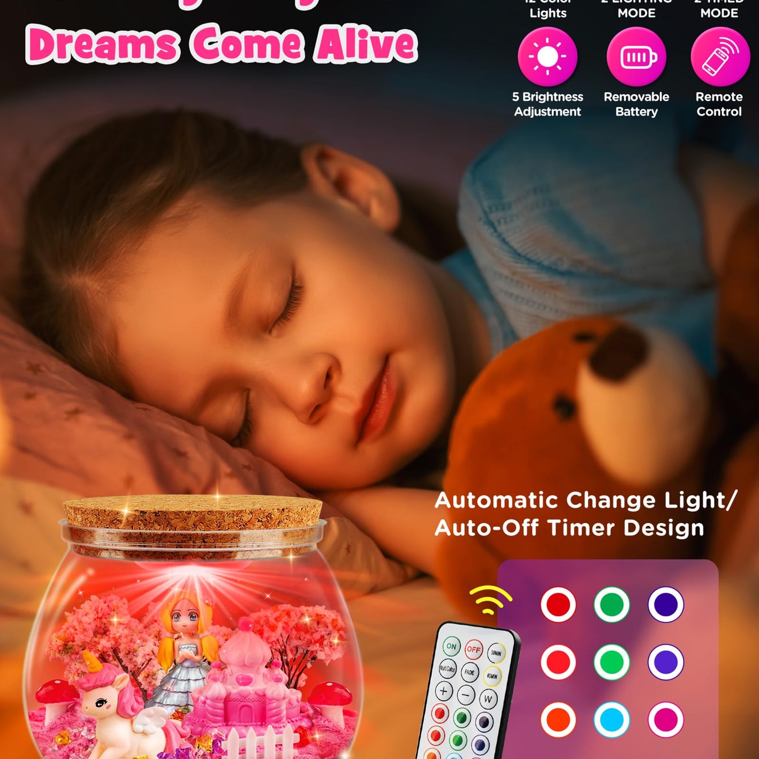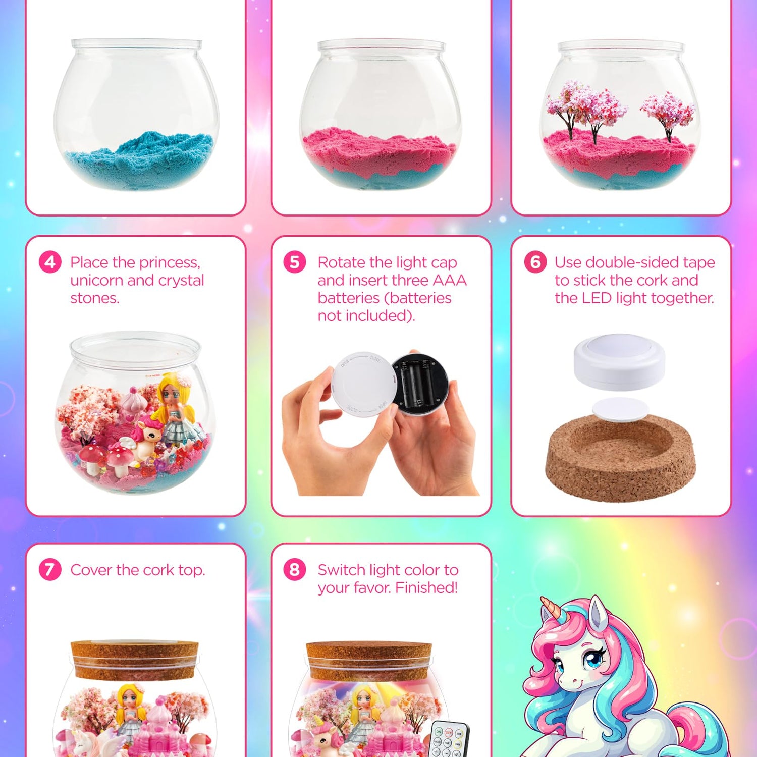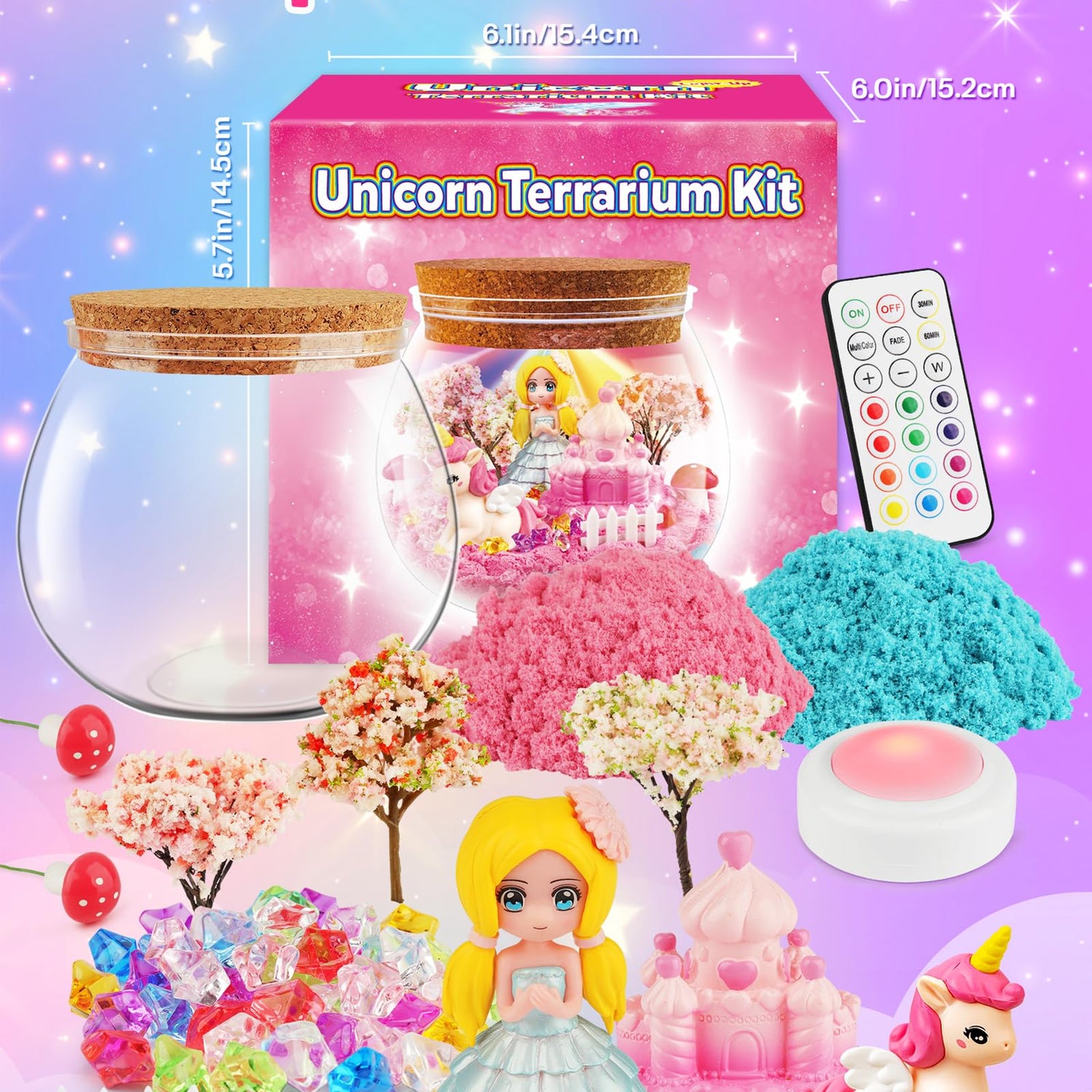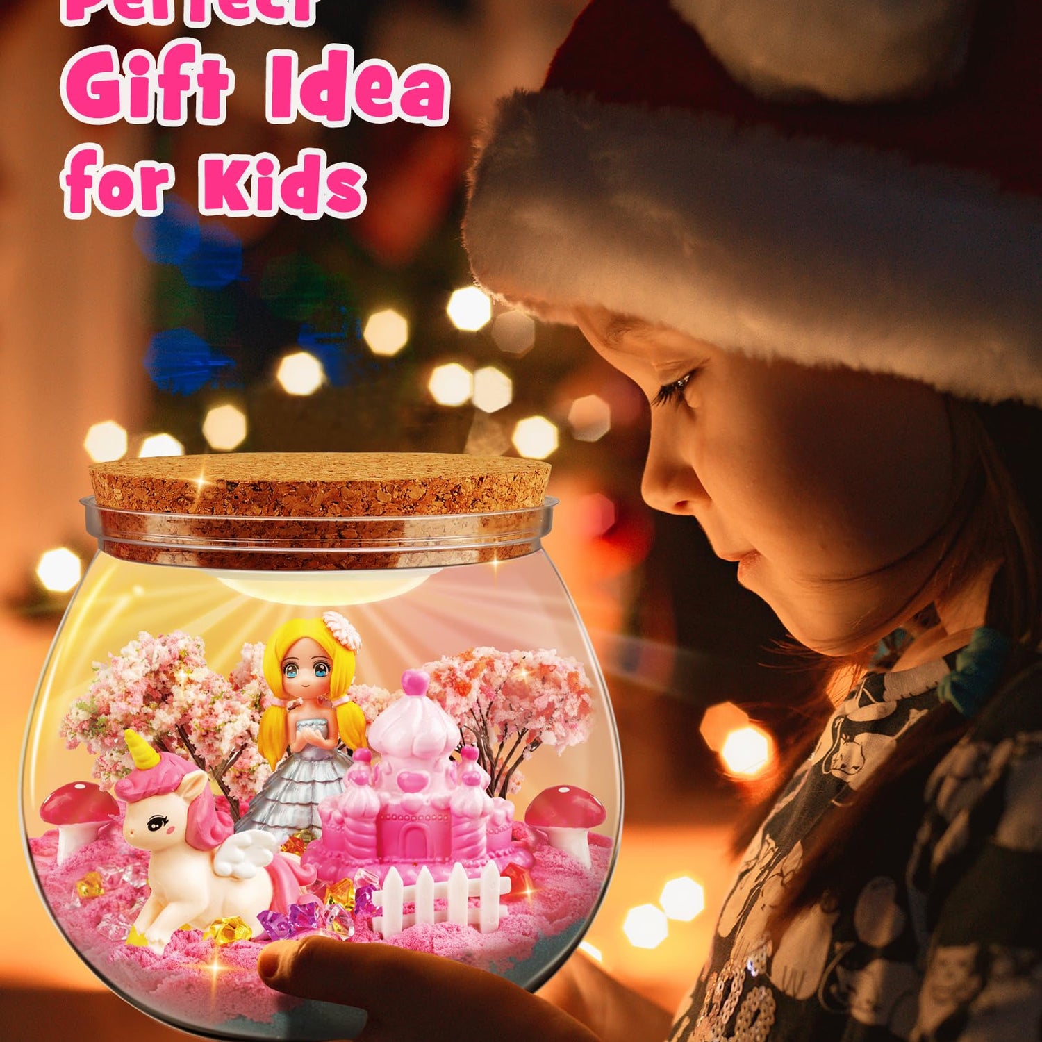 D-FantiX Unicorn Princess Toys Terrarium Kit for Kids, Led Night Light Birthday for Little Girls, DIY Arts and Crafts Science Kit for Kids Age 3 4 5 6 7 8-12 Year Old