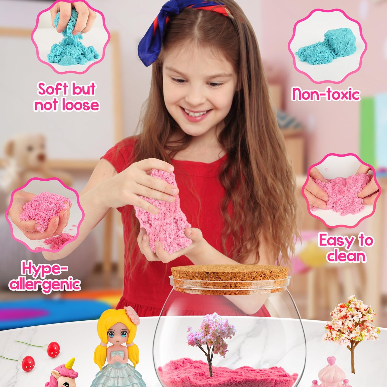 - Princess Unicorn Toy Sets: This glow and grow terrarium kit is a treasure trove for kids! It comes with magic sand, 12 colored LED night light with remote control, charming unicorn, mushroom and castle miniatures, and various decorative accessories. It's the perfect arts and crafts project for kids to create their own dream castle world