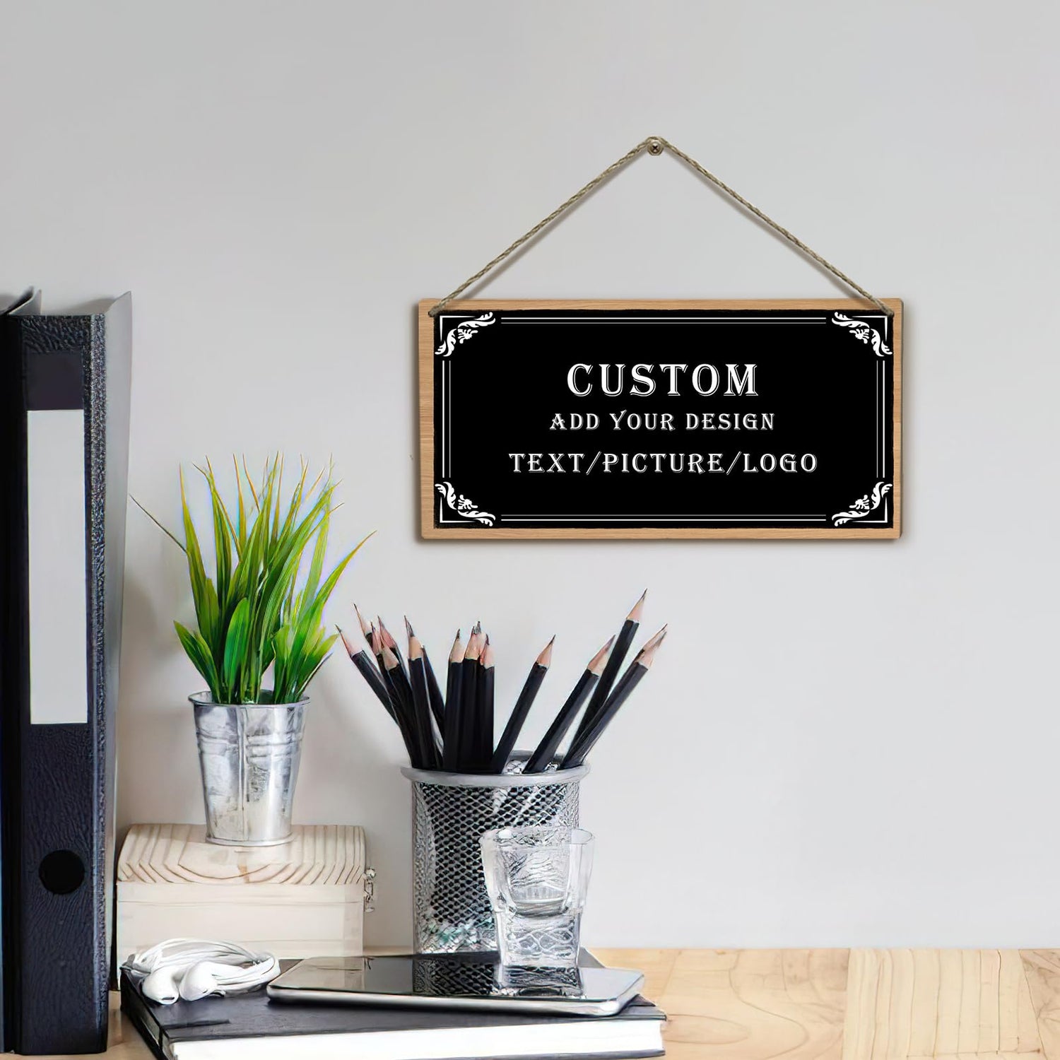 Dacawin Custom Sign Personlized Wood Sign for Door Add Your Text Picture Logo to Design Your Personal Signs Customizable Wooden Wall Door Plaque for Home Business Office Decor 6x12 Inch