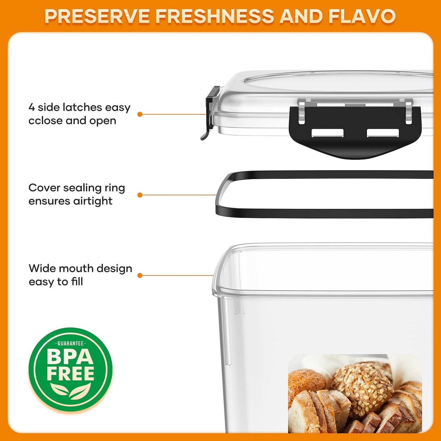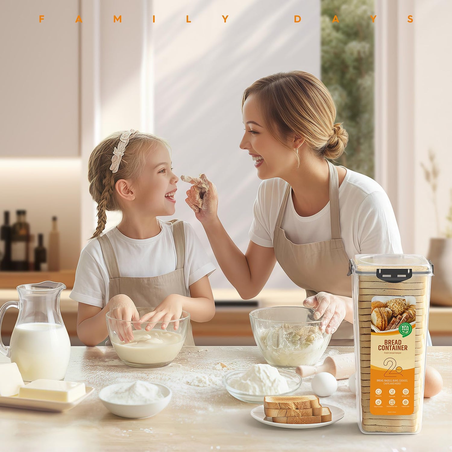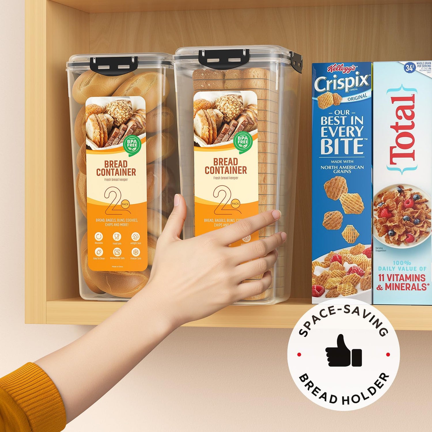 - 【Bread Holders to Keep Bread Fresh】This reliable bread holder is designed to keep your bread crisp, fresh, and safe for longer periods. Perfectly sized to accommodate any loaf, whether store-bought or homemade. Built to last, it’s crafted from high-quality, durable materials and features airtight silicone gaskets along with secure 4-side-locking lids to lock in freshness and protect against pests like insects and ants