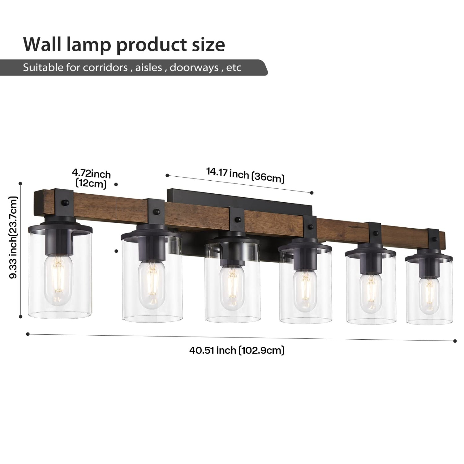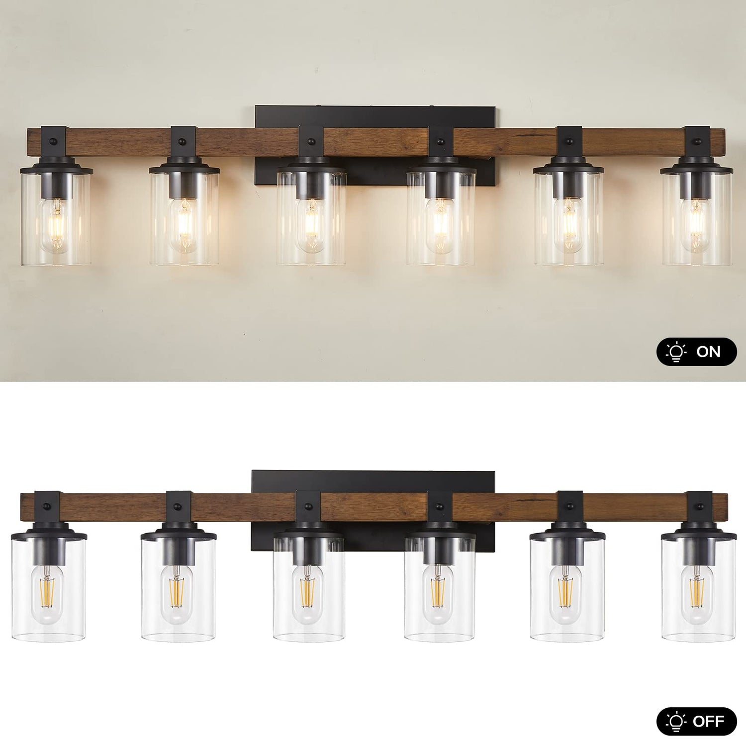 - 【Premium Material】Our bathroom light fixture is made of high quality metal and wood, compatible with incandescent, LED, CFL and other bulbs of E26 standard medium base (up to 40W, Bulbs NOT Included).