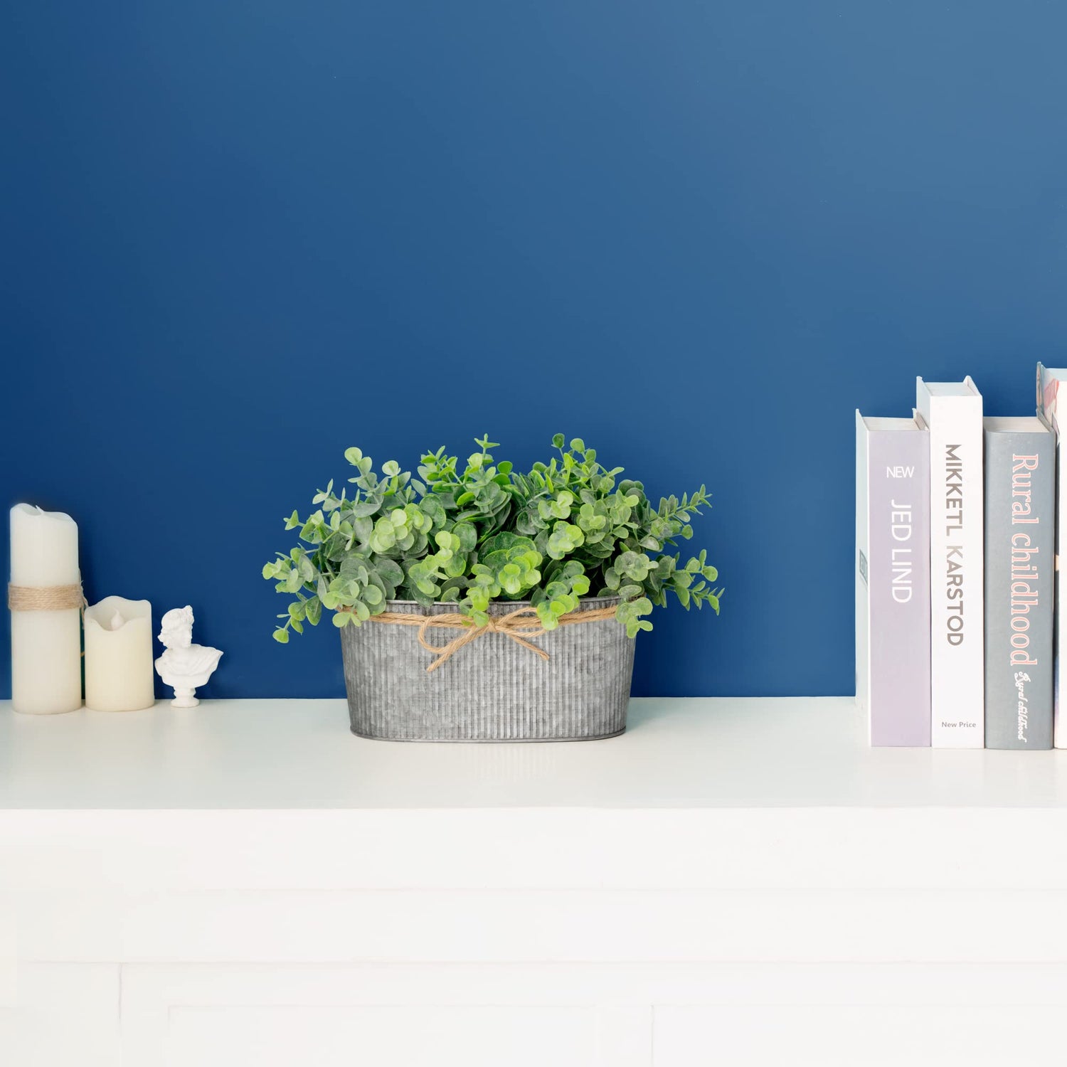 Dahey Artificial Eucalyptus Faux Plants Indoor for Farmhouse Home Decor Fake Potted Plants in Rustic Rectangular Pots Table Centerpiece for Office Bath Living Room Greenery Decor, 7" L x 4" H