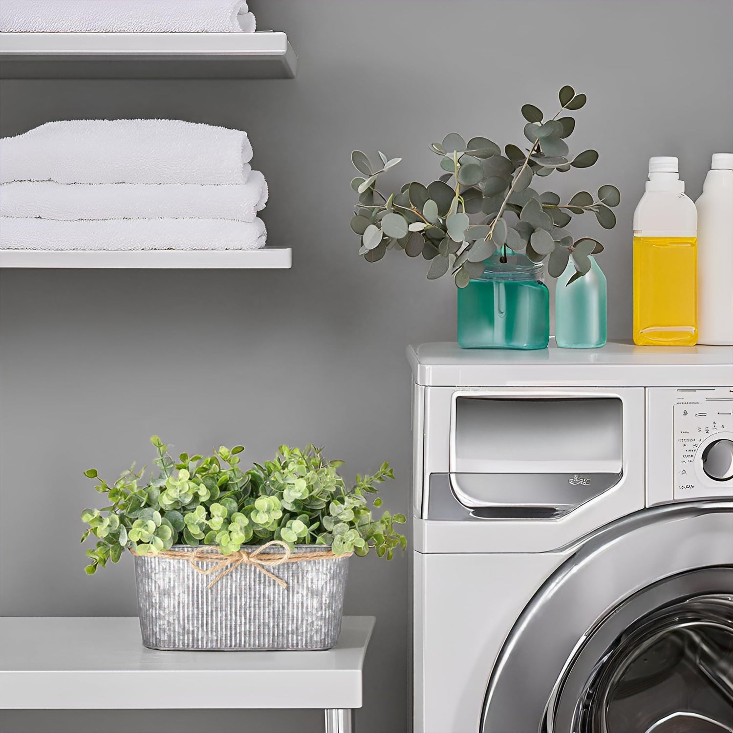 - Unique Design: Fake eucalyptus plant with rectangular metal pots, unique design and realistic appearance, covered with a layer of flocking. It is a great artificial plants for home decor indoor