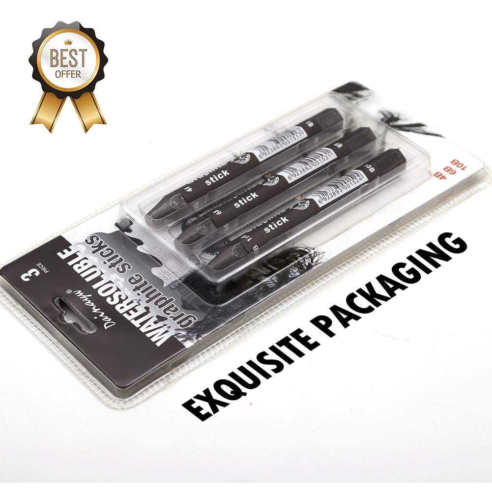 dainayw Graphite Stick Set - Water Soluble - 4B 6B 10B, Art Drawing Supplies for Sketch & Shading Pencils, Artist Sketching - 3 Pcs