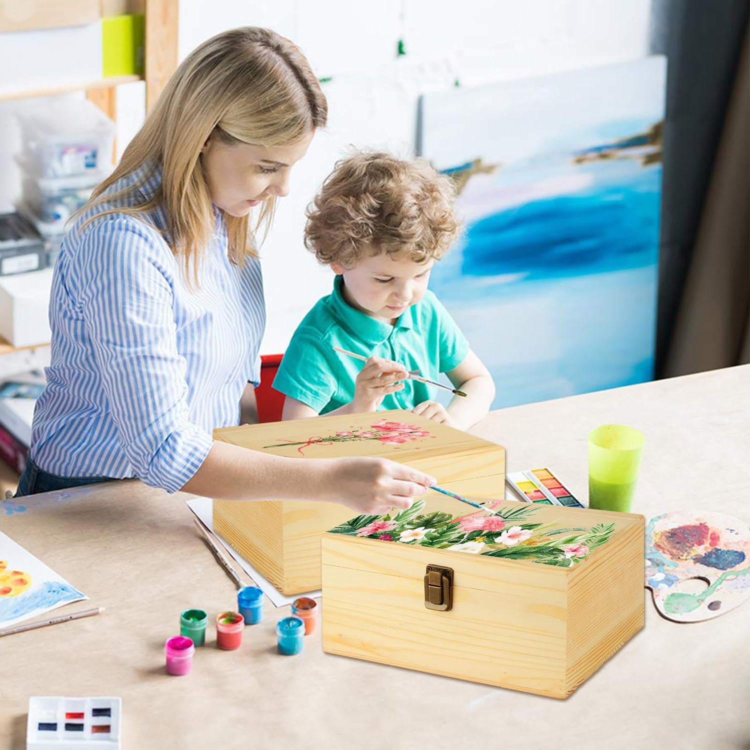 - Perfect Craft Box: Large unfinished wood box design with hinged lid and front clasp, easy to keep your items safe
