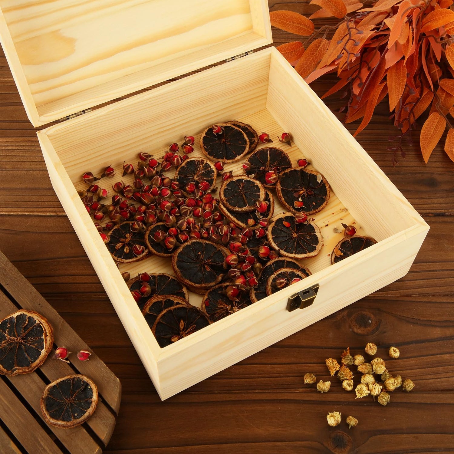 DAJAVE Unfinished Wooden Box, Wooden Storage Box with Hinged Lid, Pine Wood Box DIY Craft Stash Boxes for Arts Hobbies, DIY, Home Storage(9x9x4 Inch)