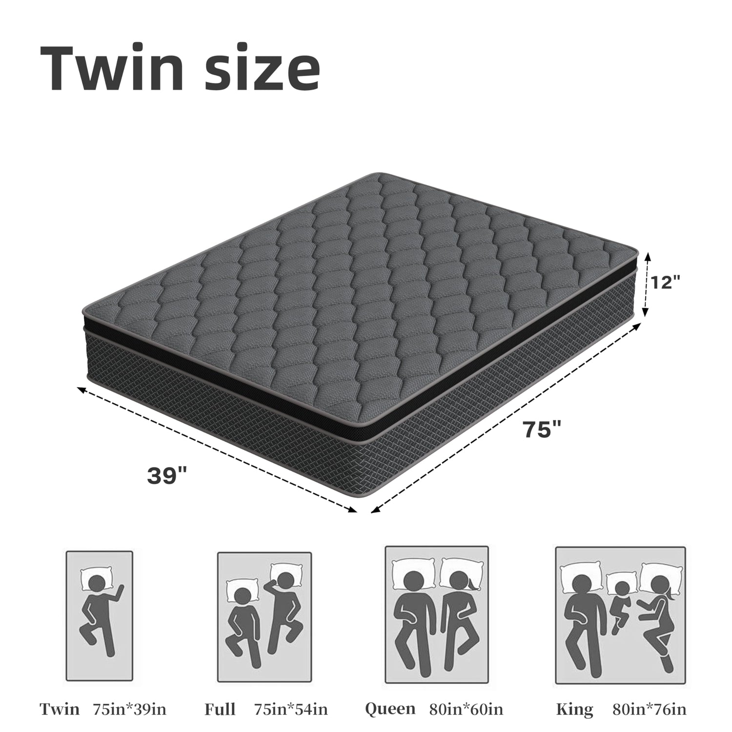 DAJIYUHC Twin Mattress, 12 Inch Hybrid Mattress in a Box, Memory Foam and Pocket Springs, Medium Plush Feel with Motion Isolating, CertiPUR-US Certified, Fiberglass Free -365-Night Trial
