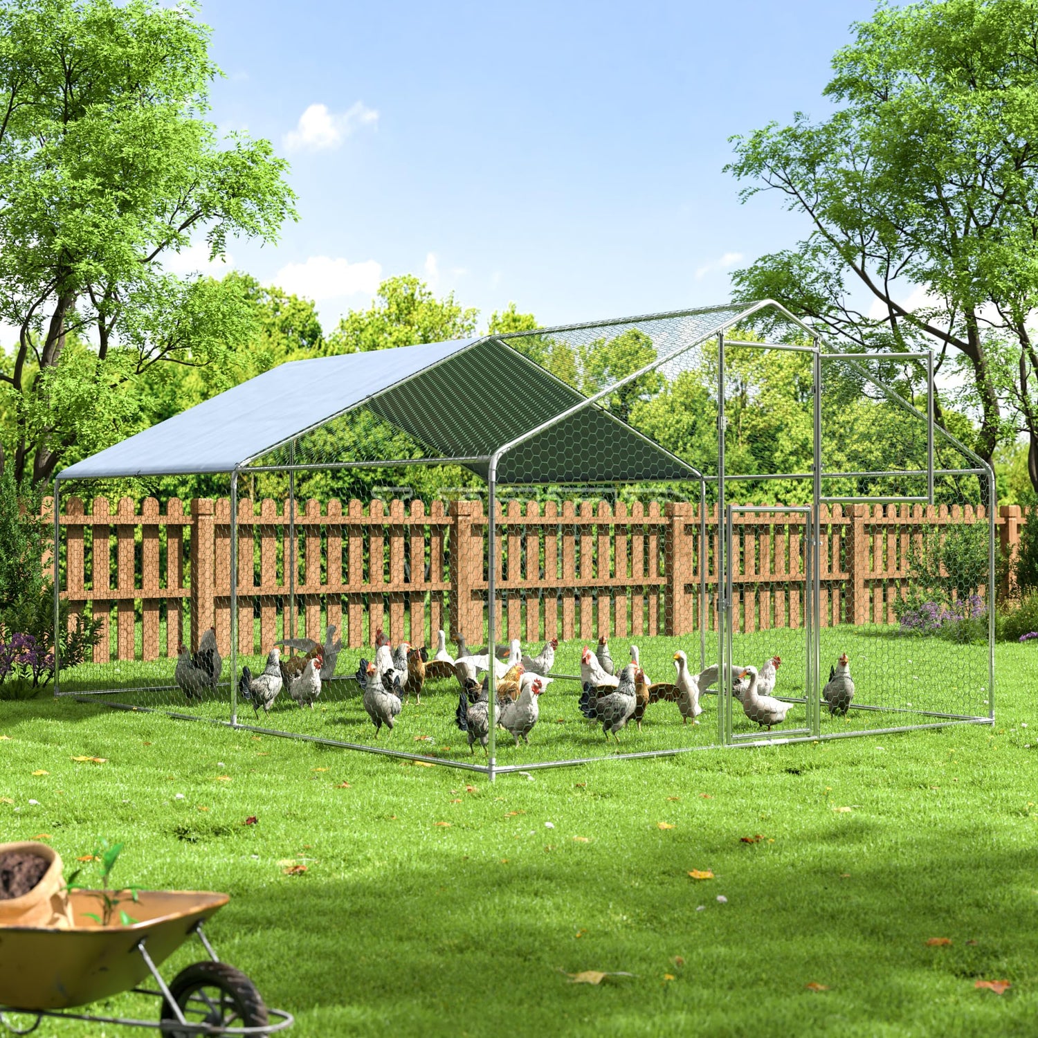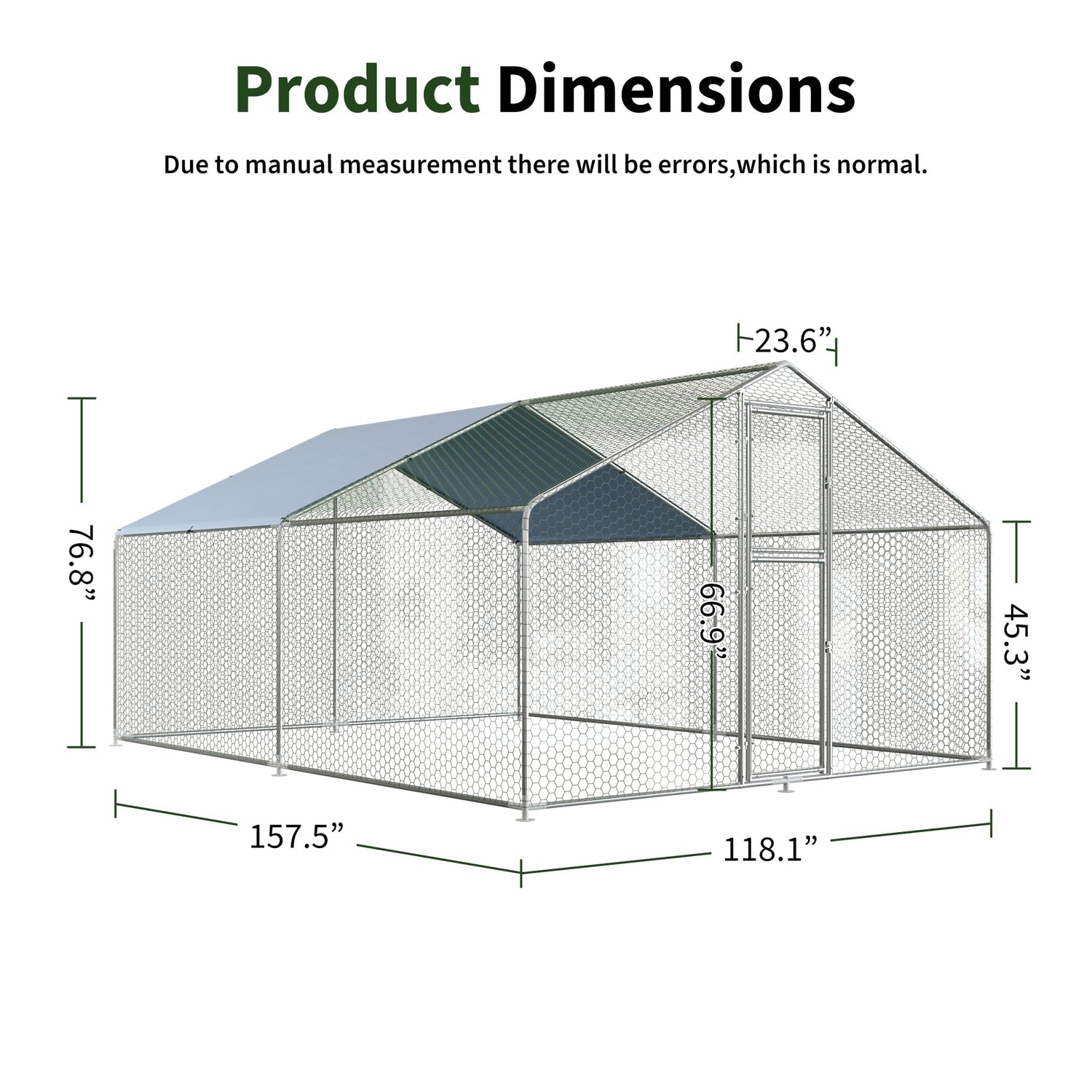DAKITO Chicken Coop,Large Metal Chicken Run Pen,Walk in Chicken Coops for 10/40 Chickens,Double Door Chicken House with Waterproof & Anti-UV Cover for Backyard. (13.1x9.8x6.4 FT)