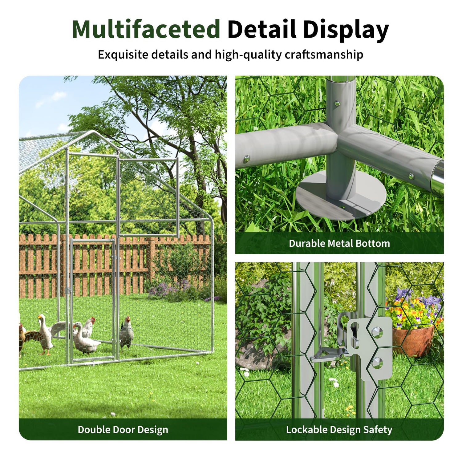 DAKITO Chicken Coop,Large Metal Chicken Run Pen,Walk in Chicken Coops for 6/10 Chickens,Double Door Chicken House with Waterproof & Anti-UV Cover for Backyard. (19.7x9.8x6.4 FT)