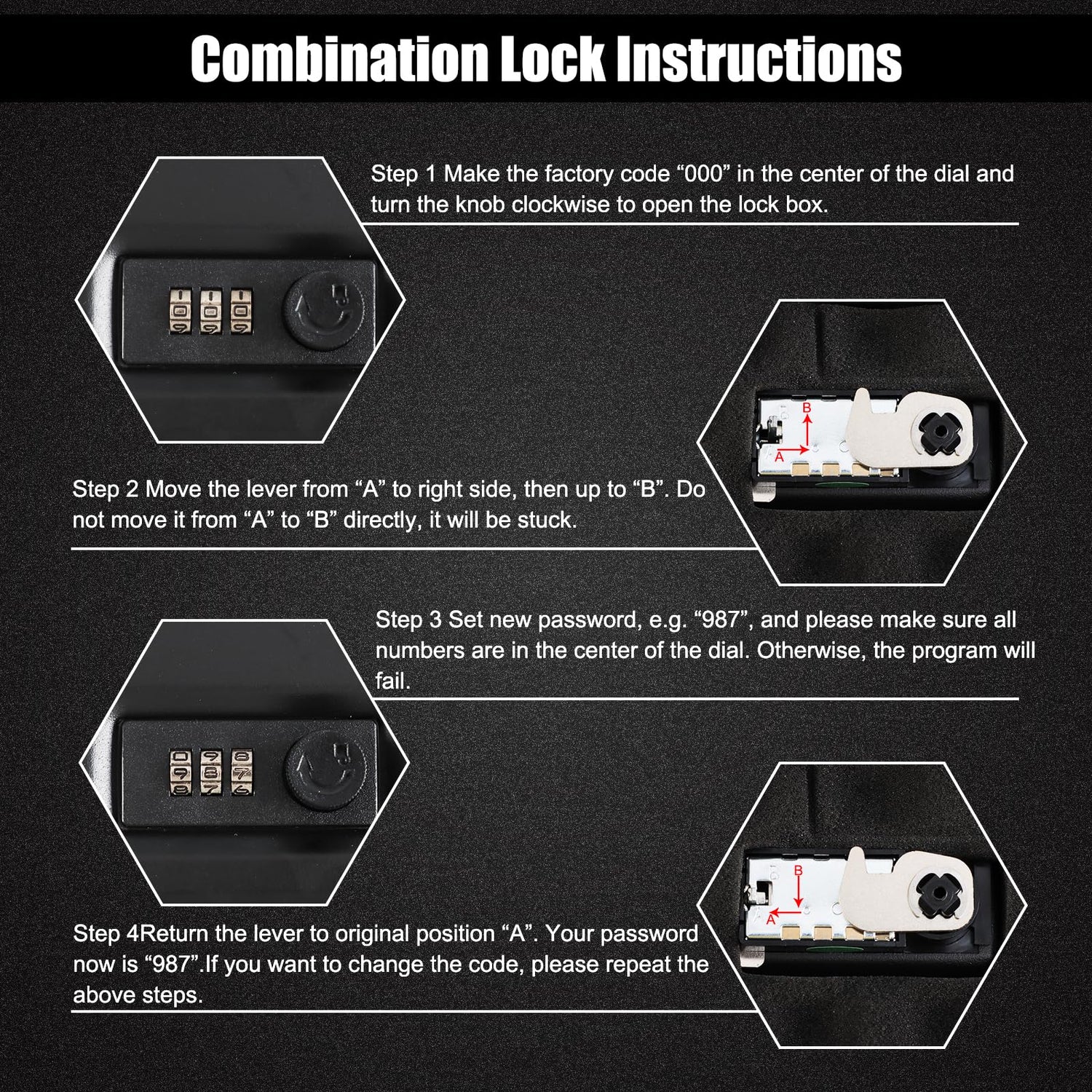 Dalmbox Gun Safe for Pistols X Large, 11 x 7 x 3 Inches, Handgun Lock Box with Combination Lock Portable Travel Pistol Safe for Car, Home, Travel