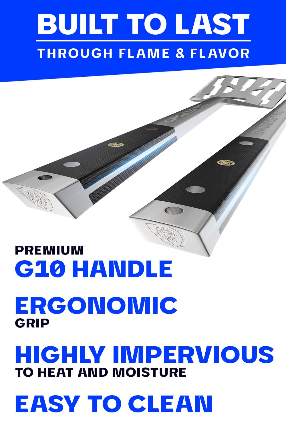 - Fire Up The Grill - The Dalstrong Premium G10 Grill Kit is professionally equipped with all the essentials to take your barbecue game to the next level and have you grilling like the pros. Featuring a complete set of top-shelf tools expertly crafted out of premium heavy-duty, solid 430 stainless steel, complimented with a military-grade G10 handle that is highly impervious to even the highest of grilling temperatures for life-long durability. This is not your average grill set!
