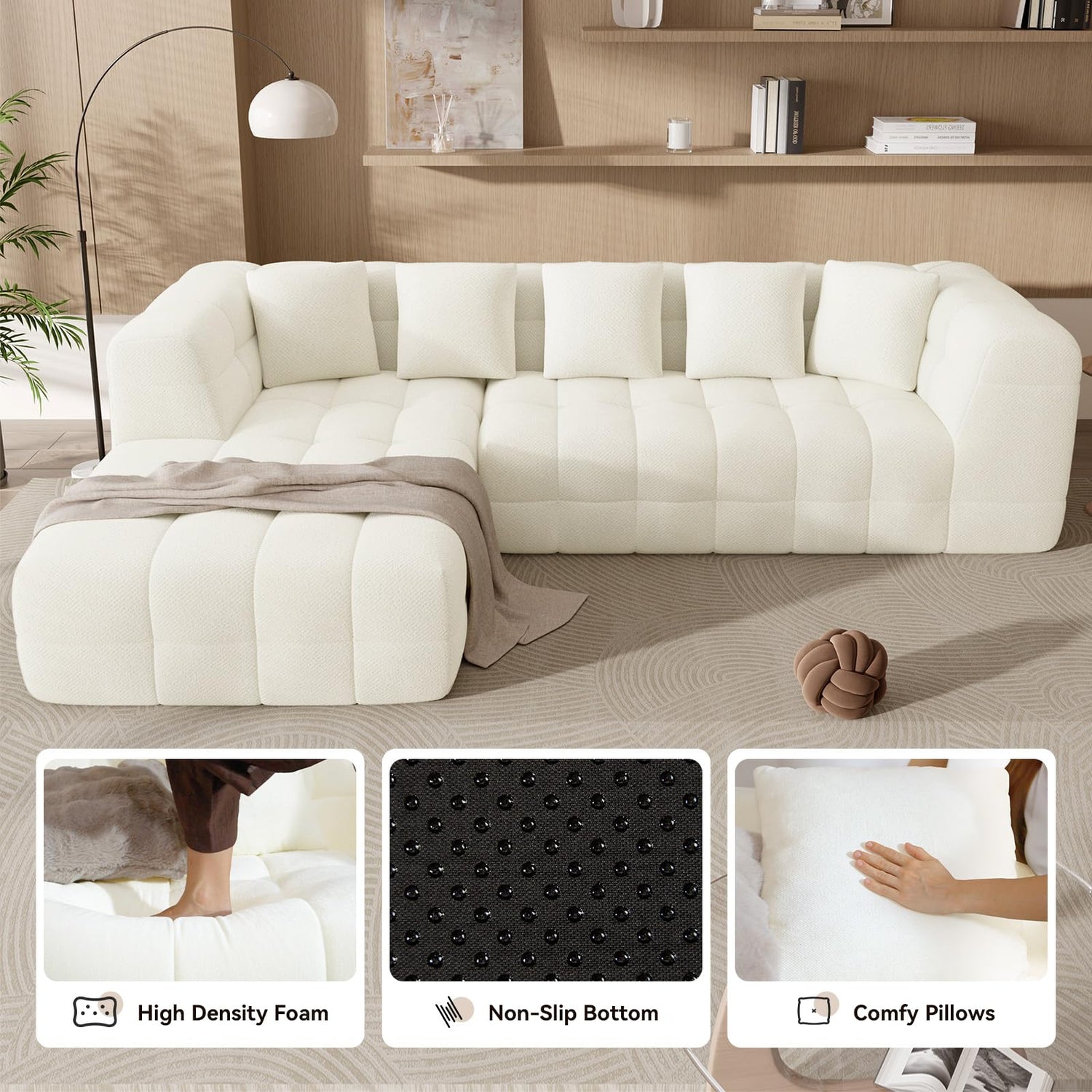 Daluvenix 107" Modern Boneless Couch with L - Shaped Chaise, Comfy Chenille Modular Sectional Sofa with Tufted Design, Deep Seat Upholstered Sofa Bed, No - Assembly Sectional Couch, White