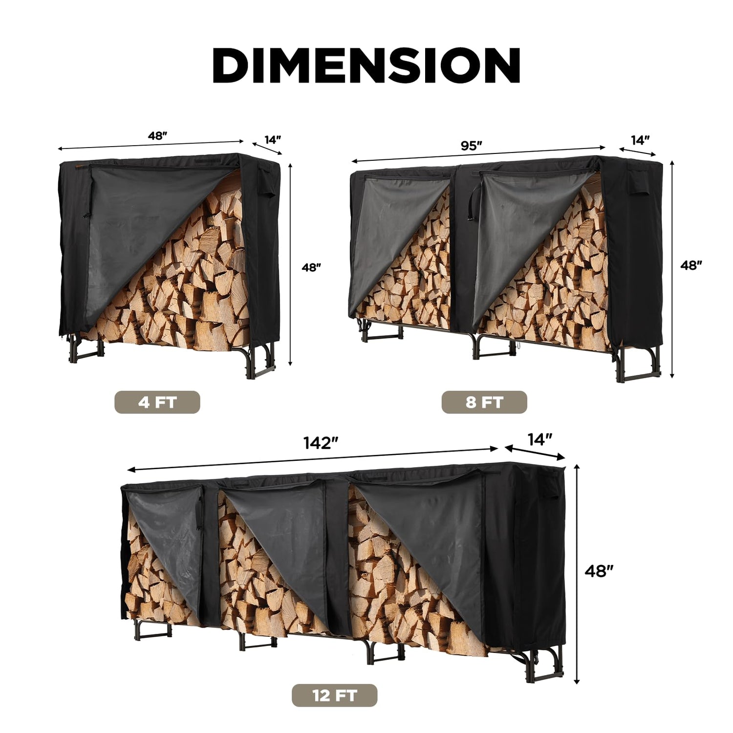 Danrelax 8ft Firewood Rack Outdoor with Cover, Wood Storage Rack for Fire log and Firewood, 600D Oxford Fabric Water-Resistant Cover, for Fireplace Indoor, Patio, Courtyard, Black
