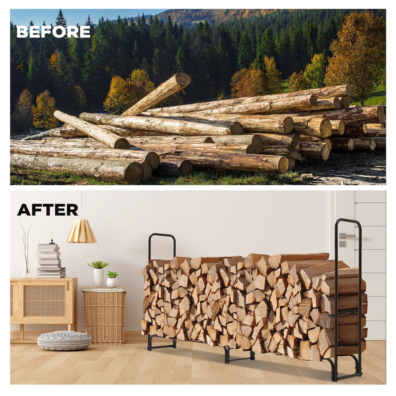 - 【Indoor & outdoor】:Danrelax wood storage rack is crafted from a double-layer black powder-coated heavy duty tubular steel structure that offers exceptional durability, robustness, rust and weather resistance. Therefore, it can be used as an ideal wood holder in both indoor and outdoor environments.This wood storage rack is extremely flexible, whether it is outdoor back porch, backyard patio, fire pit, or indoor garage, fireplace, and even under the roof, tool shed, wood shed, etc., it can be perfectly adapted. You can put it anywhere you need it, depending on the actual needs.