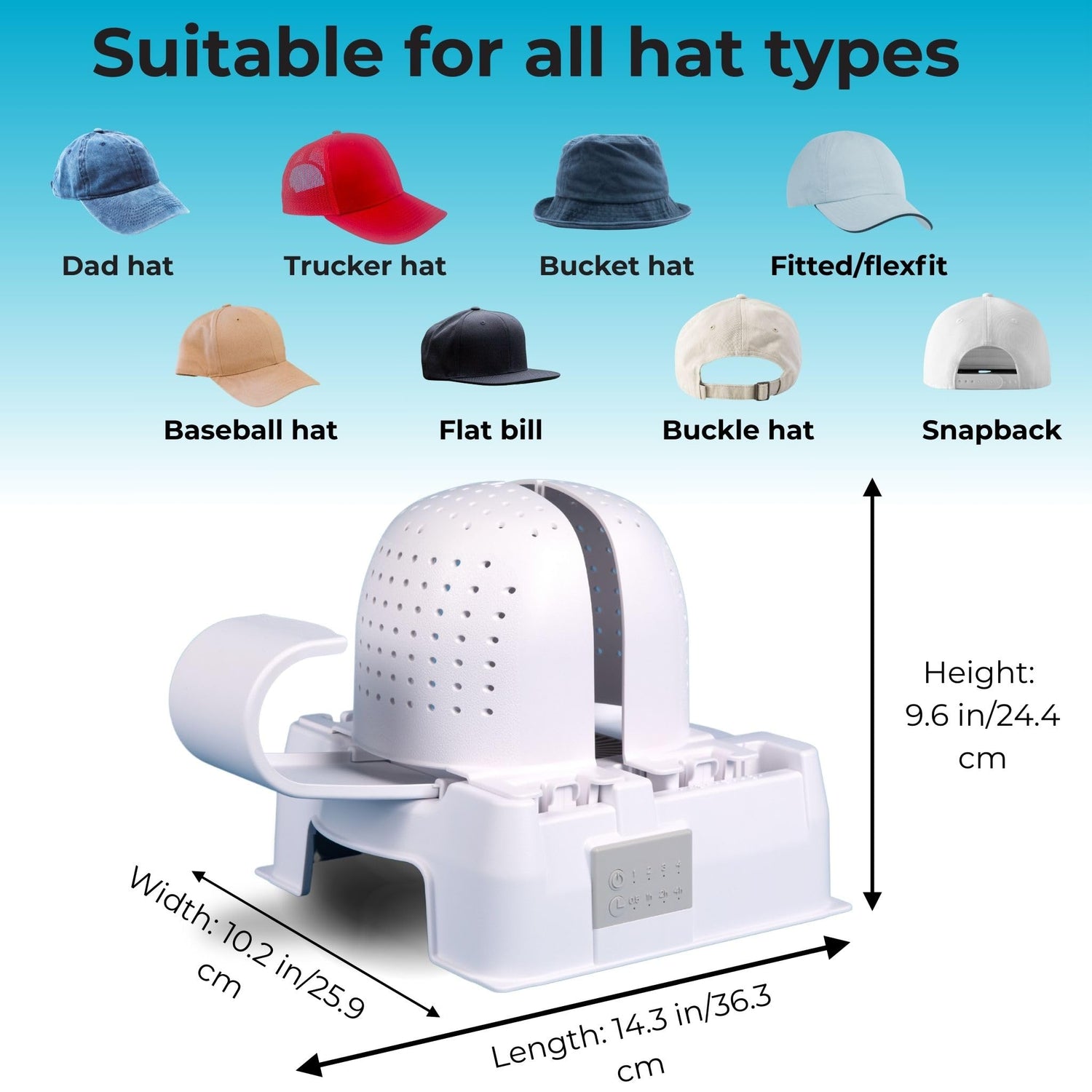 - 💨 FAST DRYING, NO SHRINKING: Built-in electric fan speeds up drying without heat, so your hat won’t shrink, crack, or warp. Just wash, spray, and shape—ideal for sweat-stained or freshly cleaned caps.