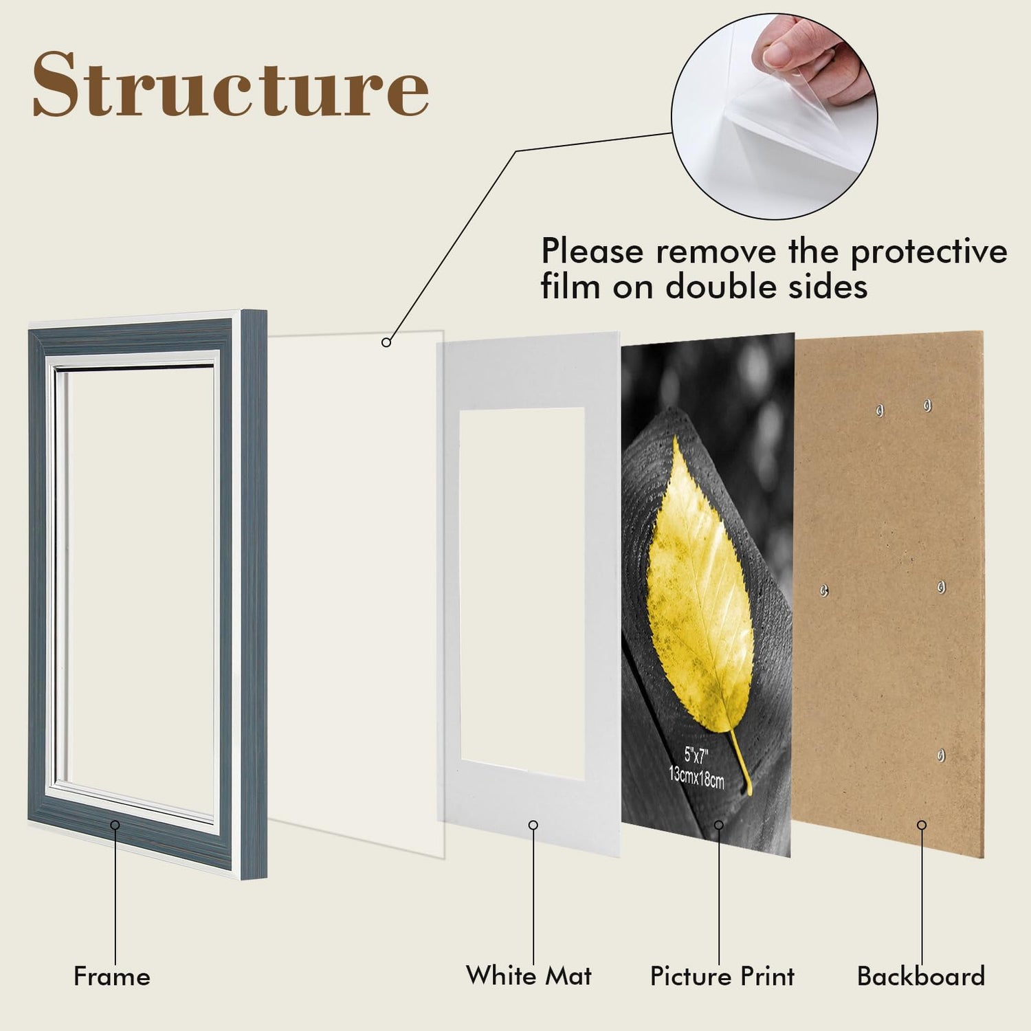 - Display 2 Different Sizes Picture-The picture frames come with mat, allowing you to display photos of 2 different sizes. With the mat, they can display 4×6 photos, and without the mat, it can fit 5×7 photos.