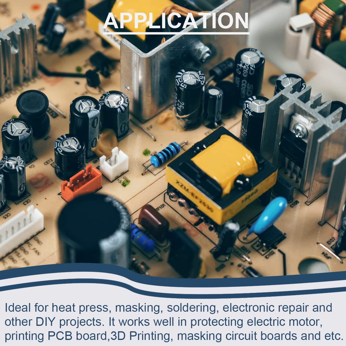 - Application: ideal for heat press, masking, soldering, electronic repair and other DIY projects. It works well in protecting electronic products, electric motor, painting, printing PCB board,3D Printing, masking circuit boards and etc.