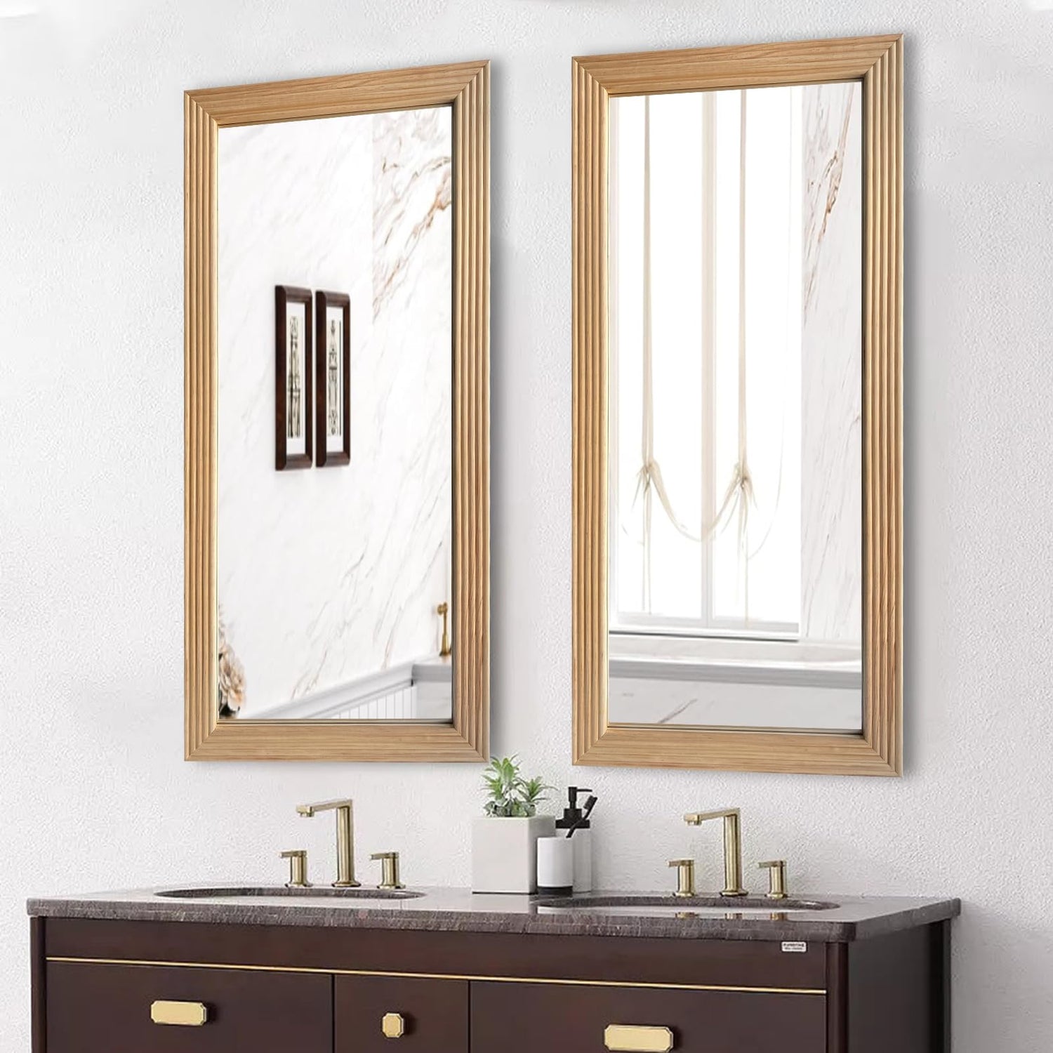 DAOYIJIAJU Large Wooden Framed Wall Mirror, Rustic Natural Wood Hanging Mirror, Farmhouse Wall Mirror for Bathroom Vanity Bedroom Living Room, Vertical or Horizontal Hanging, 47" x 22"