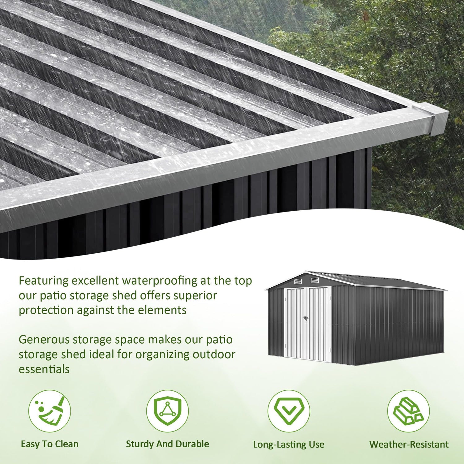 DAUSOLA 10x12 FT Outdoor Storage Shed, Metal Garden Tool Shed with Updated Frame Structure and Lockable Doors, Ideal for Backyard Garden Patio Lawn, Grey