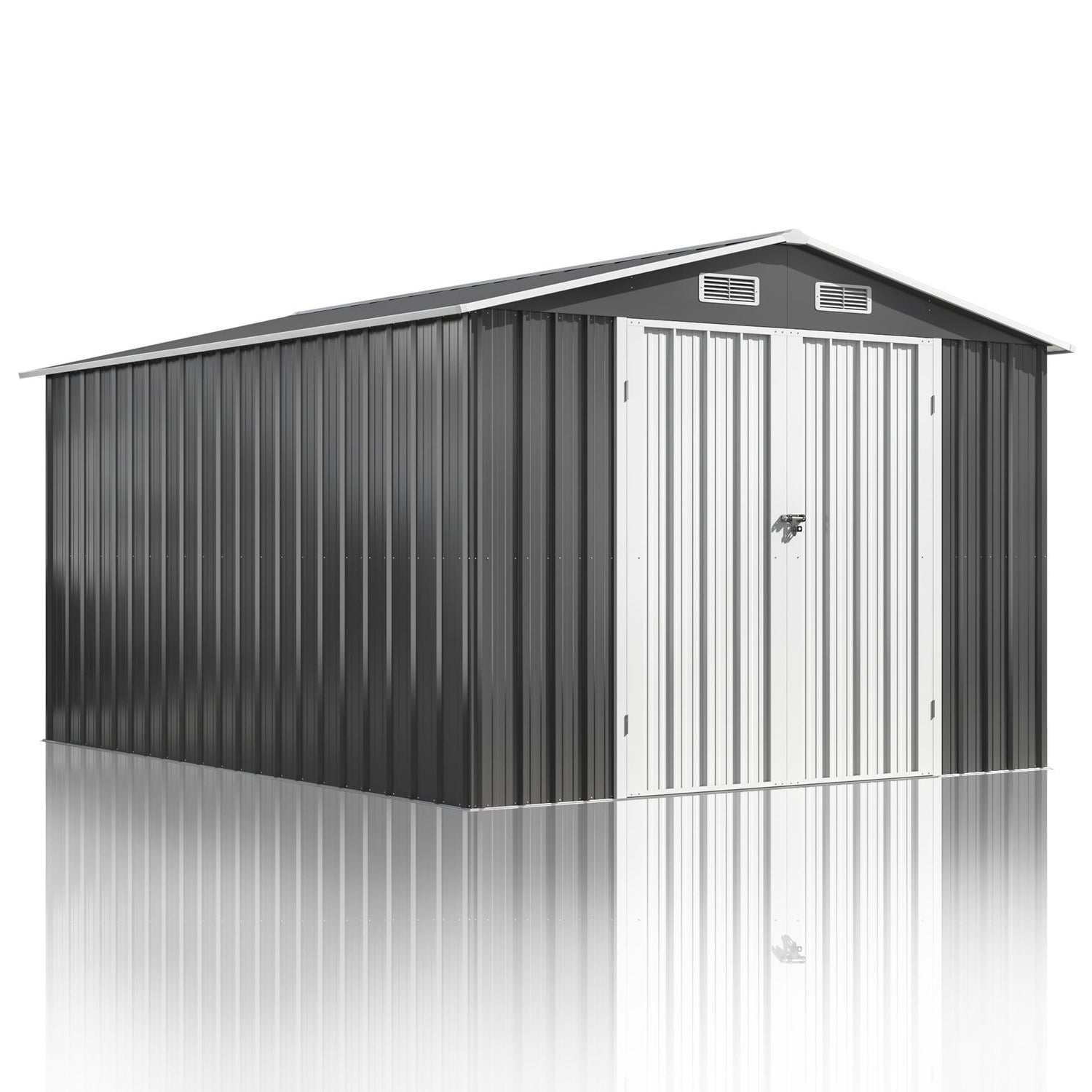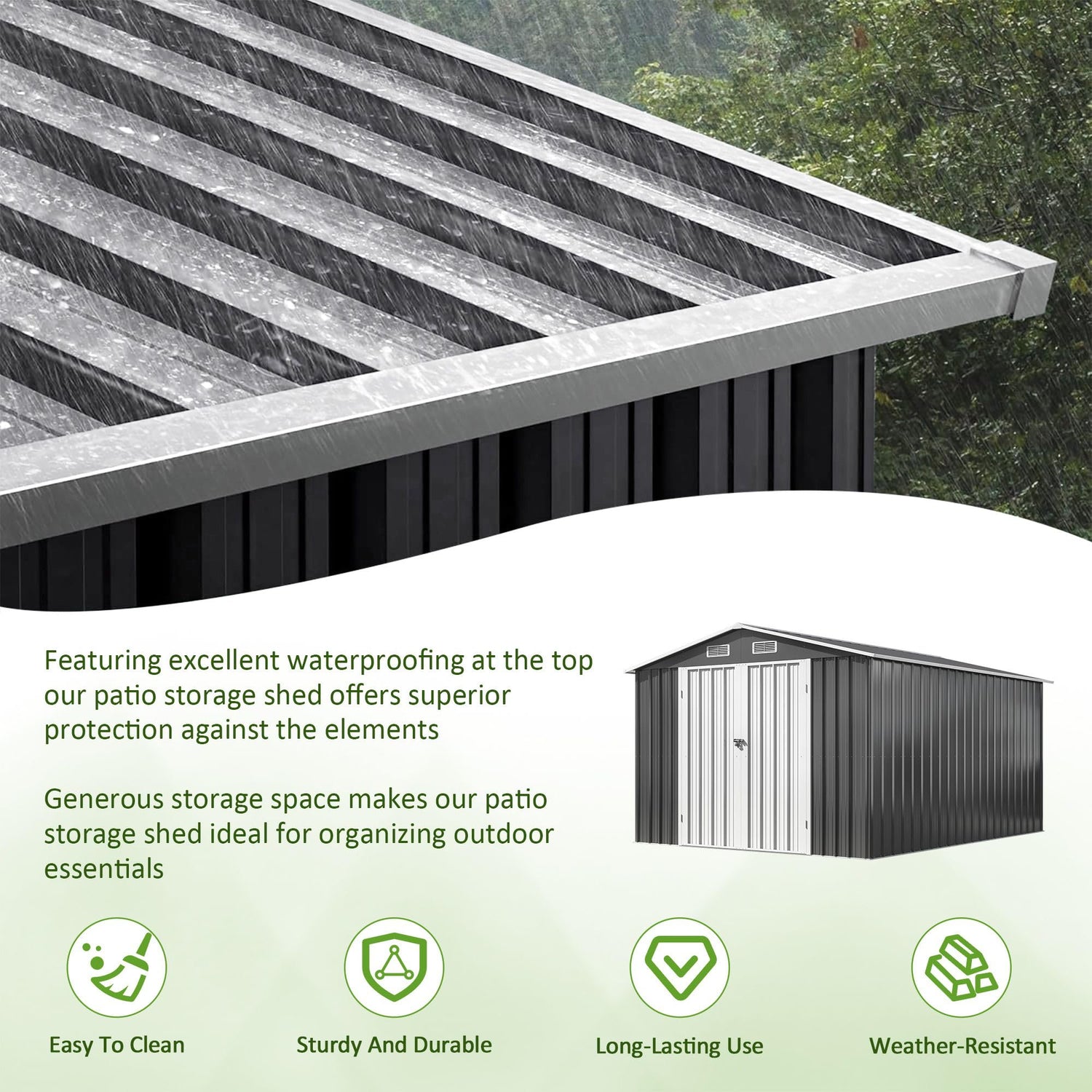 DAUSOLA 10x14 FT Outdoor Storage Shed, Metal Garden Tool Shed with Updated Frame Structure and Lockable Doors, Ideal for Backyard Garden Patio Lawn, Grey