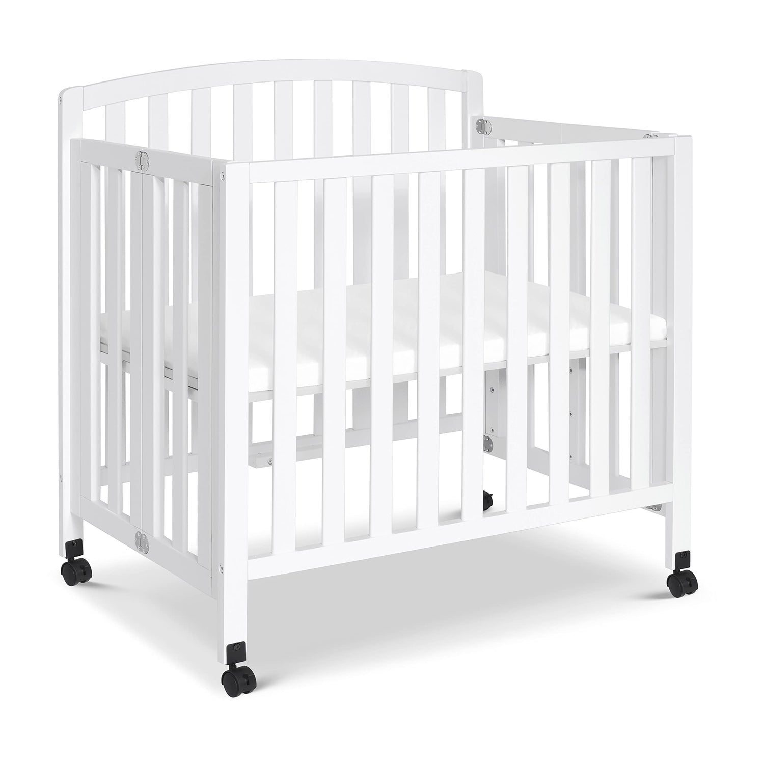 DaVinci Dylan Folding Portable 3-in-1 Convertible Mini Crib and Twin Bed in White, Greenguard Gold Certified