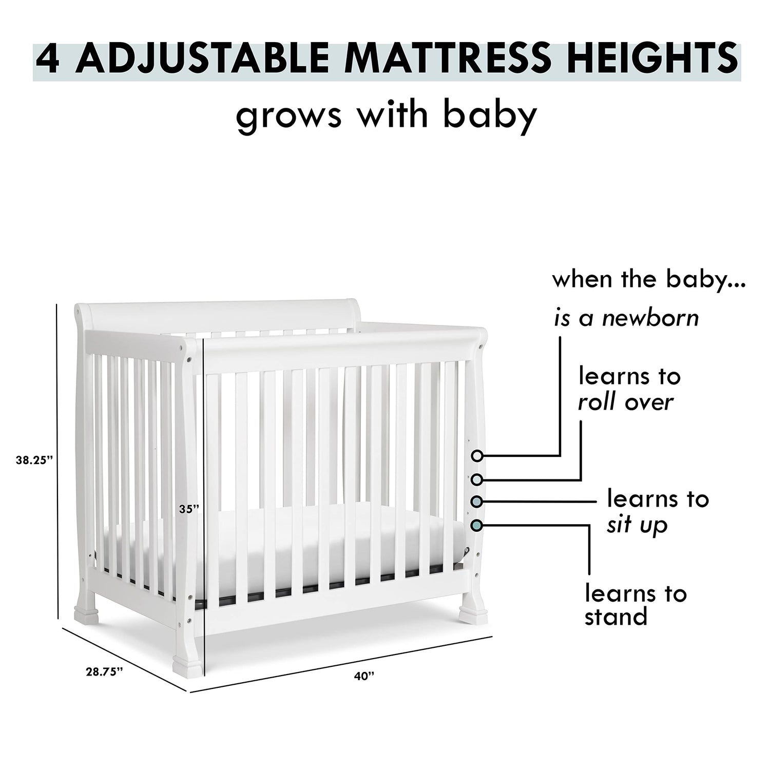 - GROWS WITH BABY: Four adjustable mattress positions to lower as your baby begins to sit and stand. Converts to mini toddler bed, daybed, and twin-size bed (mini toddler conversion kit #M20399 and twin-size conversion kit #M4799 sold separately)