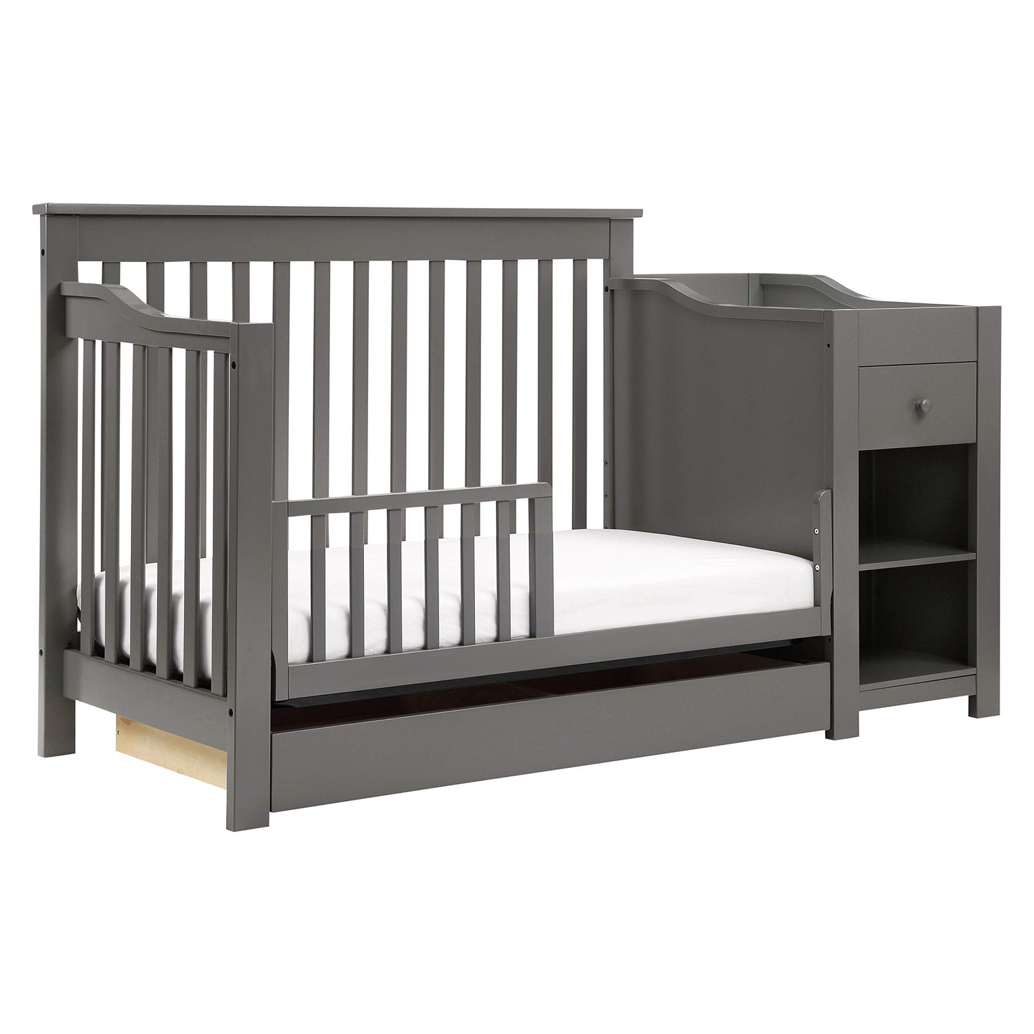 Details: The versatile Piedmont 4-in-1 crib is now available in a crib and changer combo. Featuring a large drawer underneath the crib and changing table with one compact drawer and two spacious shelves, this crib offers an abundance of storage space for all of baby's belongings. The crib converts four ways from a full size crib to a toddler bed, to a daybed, to a full size bed (mattress and full size conversion rails sold separately). After converting to a full size bed, the detachable changer with included changing pad can be easily repurposed as a dresser or nightstand. Complete the nursery with the DaVinci Ruby Recliner and Glider and DaVinci Total Coil Mattress.