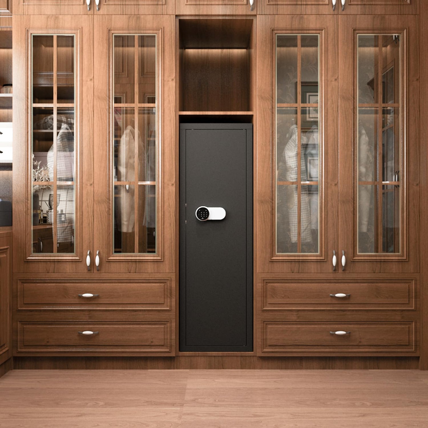 - 【Rugged All-Steel Construction】 This gun safe is expertly crafted from high-quality Alloy Steel, providing maximum protection for your firearms. The 47mm thick door panel is equipped with 4 x 22mm steel locking bolts and 5 built-in hooks, providing excellent anti-theft functionality while also offering added convenience