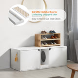 - 😽【Thoughtful Details】 This cat furniture comes with an addtional hollowed litter catcher for collecting dropped cat litter. You can easily take it out and clean at any time. There are 3 holes on the back of the cat house,which is helpful for air circulation and to reduce odor.It's also equipped with 2 magnetic doors that let you open or close the doors gently without scaring cats.
