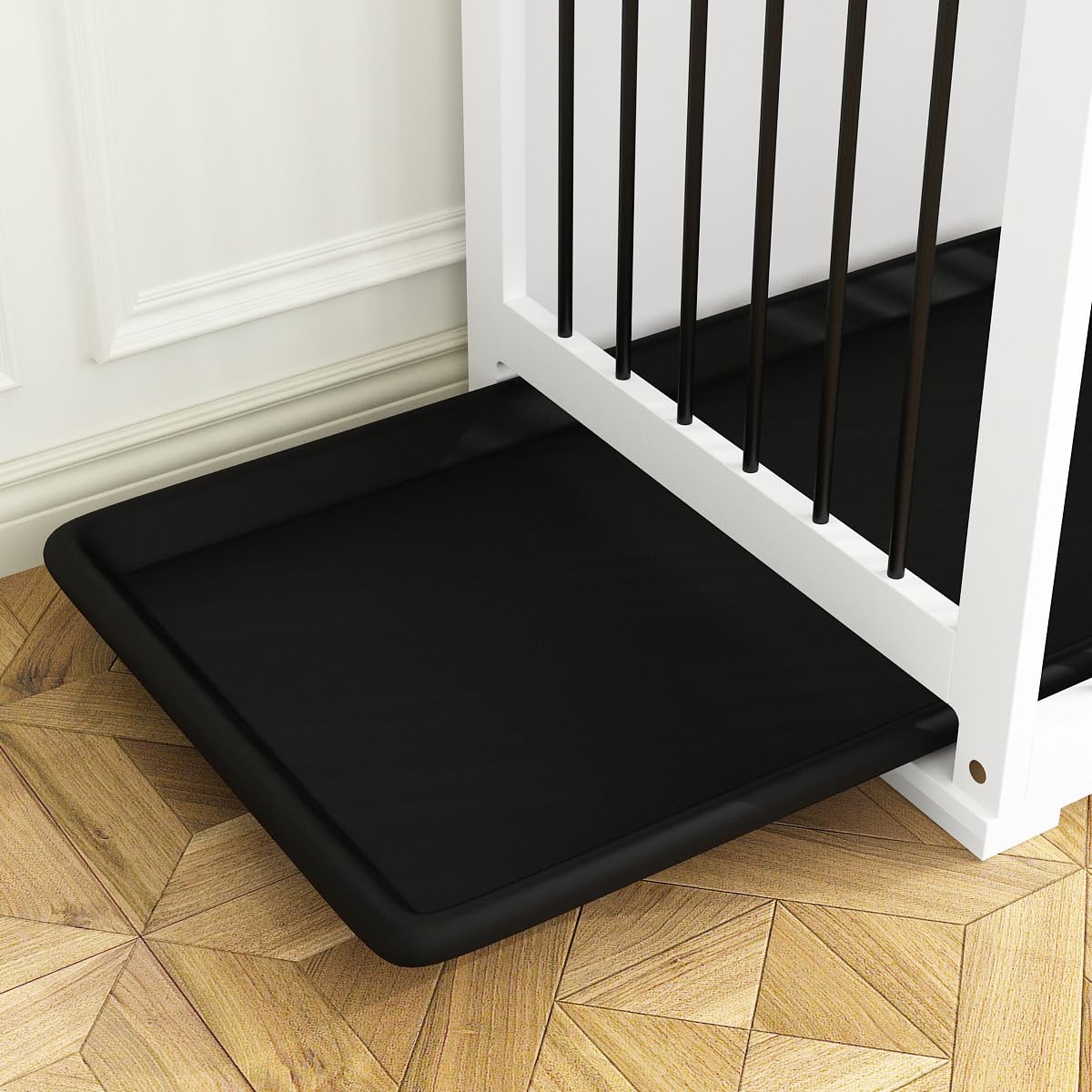 - 【THOUGHTFUL DETAILS】With its double door latches, our dog crate furniture ensures that your dogs won't easily escape you're away. Additionally, feet pads are incorporated to increase friction with the ground, preventing any potential floor scratching, as well as helps facilitate air circulation, reducing dampness at the bottom, which is beneficial for the health of dogs.