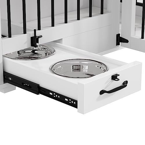 - 【TWO DOG BOWL DRAWERS】We have specially designed our dog crates with two sliding dog bowl drawers. It allows convenient access for your dog to enjoy food and water while in the crate, without making a mess on the floor. The four stainless steel bowls can be easily removed and cleaned. You can also keep the bowls pulled out, providing larger space for your dogs to move around inside the crate.