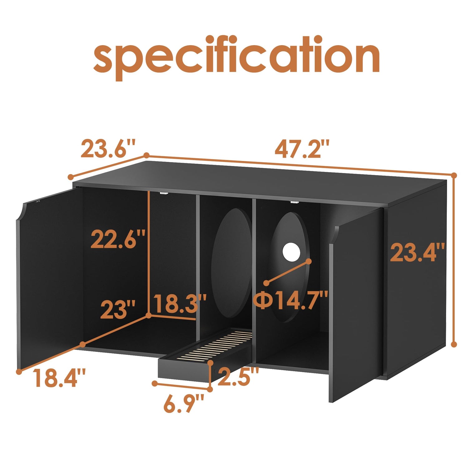 - 😽【STURDY & STABLE】Made of heavy duty PB wood with environmentally friendly and odorless coating, this large cat litter box enclosure is suitable for most cats. The dimension of the cat cabinet is 47.2"x 23.6"x 23.4". It supports up to 60 lbs(recommended).