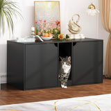 - 😽【2 ROOMS】This modern cat litter box enclosure is divided to 2 cat washrooms and 1 shared channel for cats, which guarantees cats' privacy, so that two cats won't interfere with each other.
