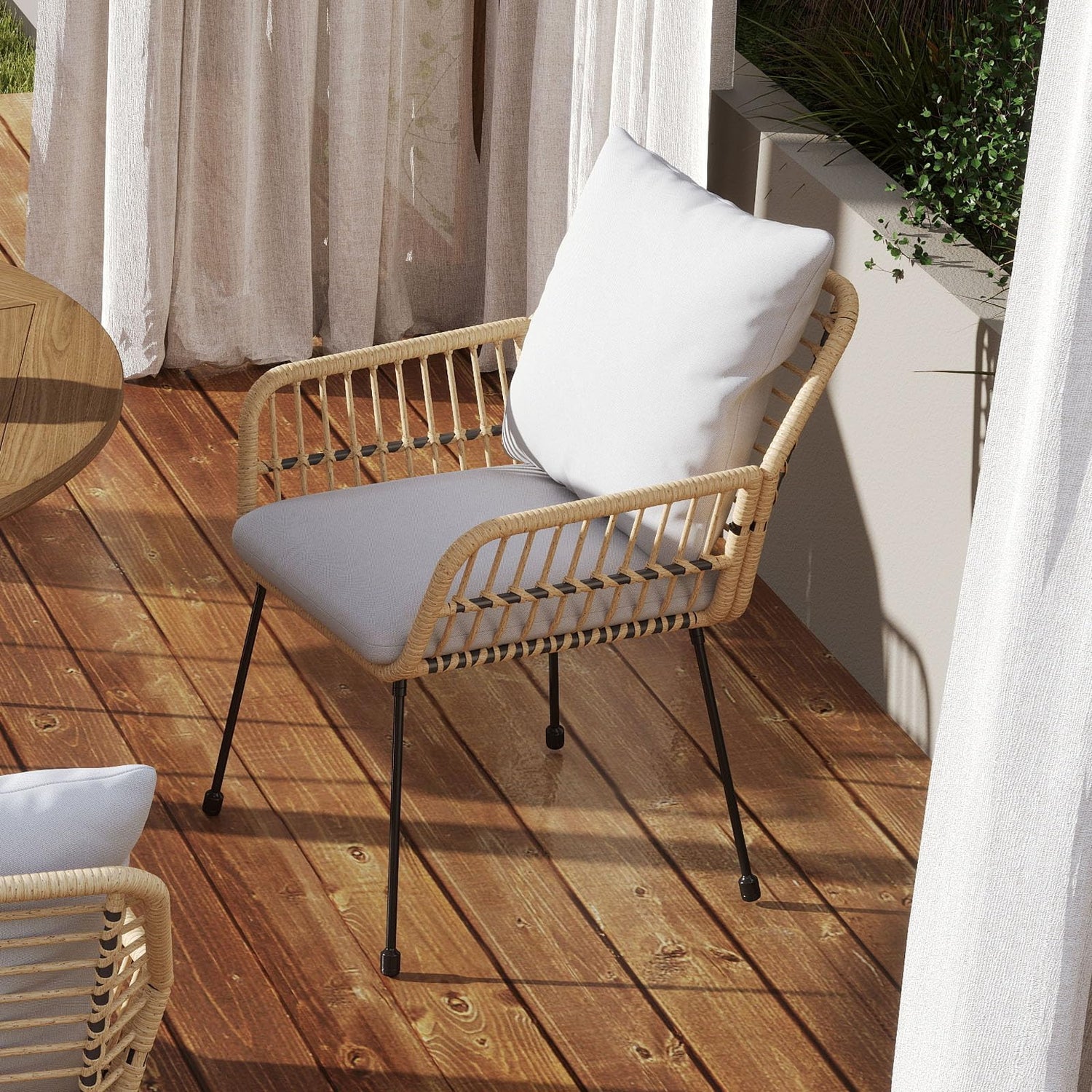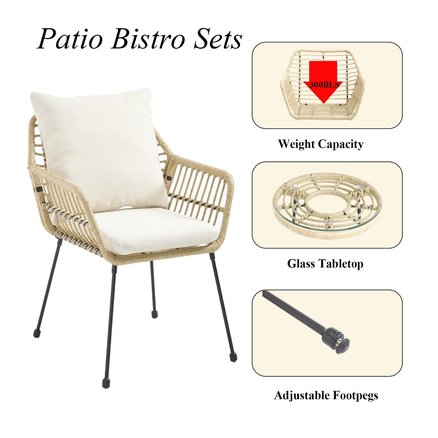 - Exquisite Weaving: 3 piece patio bistro set is made of high-quality hand-woven craftsmanship, exquisite and durable, patio set comes with a tempered glass coffee table with adjustable pegs, the design is simple and modern, it can be easily integrated into a variety of homes or commercial spaces, perfectly adapted to different decorative styles