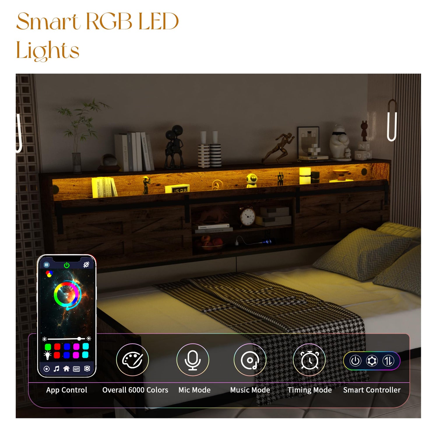 - 🏠 LED Light Bed Frame: The headboard is equipped with a built-in smart RGB LED light strip. You can control it via buttons, app, or remote, offering over many colors and many preset lighting effects. Whether you need warm lighting for reading, vibrant colors for a party, or a practical nightlight for children who are afraid of the dark, this LED bed frame suits every mood and need.