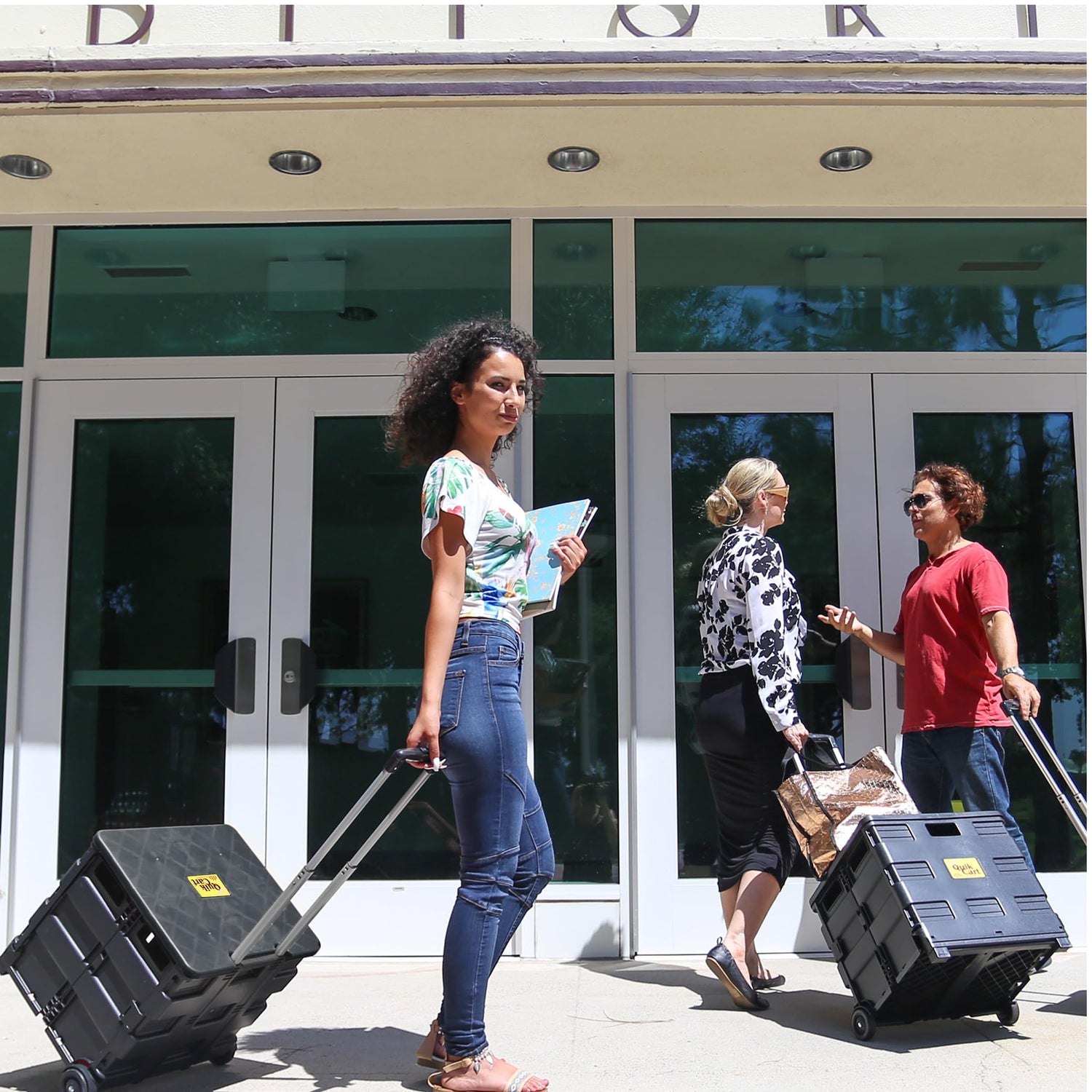 dbest products Quik Cart Collapsible Rolling Crate on Wheels for Teachers Tote Basket 80 lbs Capacity, Made from Heavy Duty Plastic Used as a Seat, Black