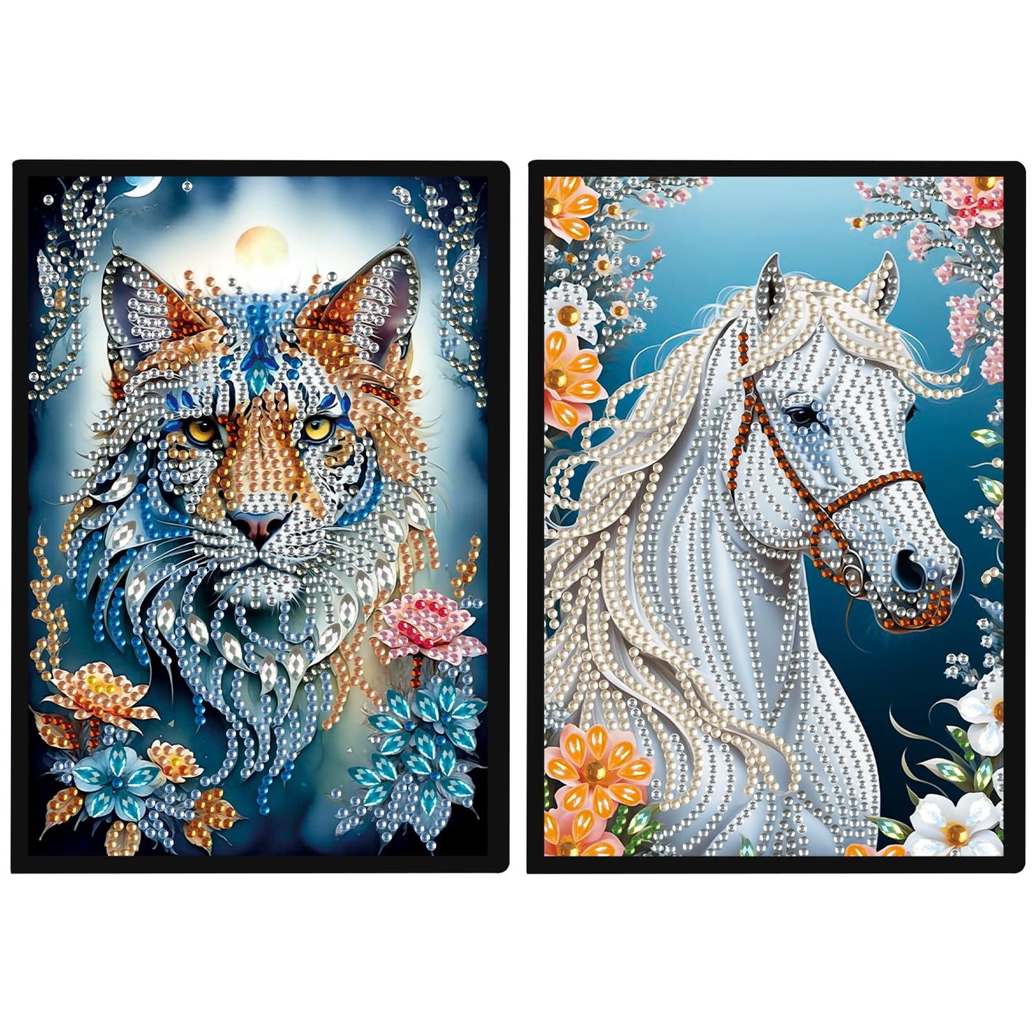 DCIDBEI 2 Pack DIY Diamond Painting Notebook Tiger Horse A5 Blank Diamond Painting Diary Sketchbook Book Rhinestone Craft Diamond Art Notebook Students 50 Sheets Diamond Journal Kits