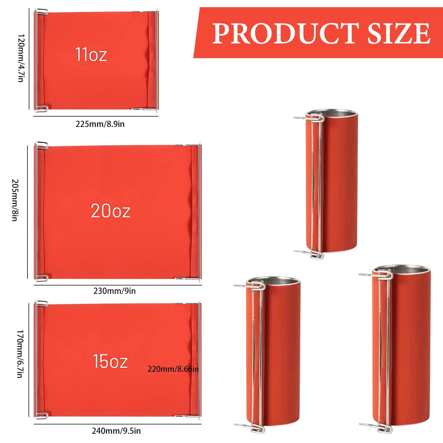 - What you get: you will get 3 pieces of sublimation silicone mug wraps and a pair of gloves, sublimation silicone mug wraps have 3 size, 11 oz, 15 oz and 20 oz, different specifications can meet your daily use and replacement needs.
