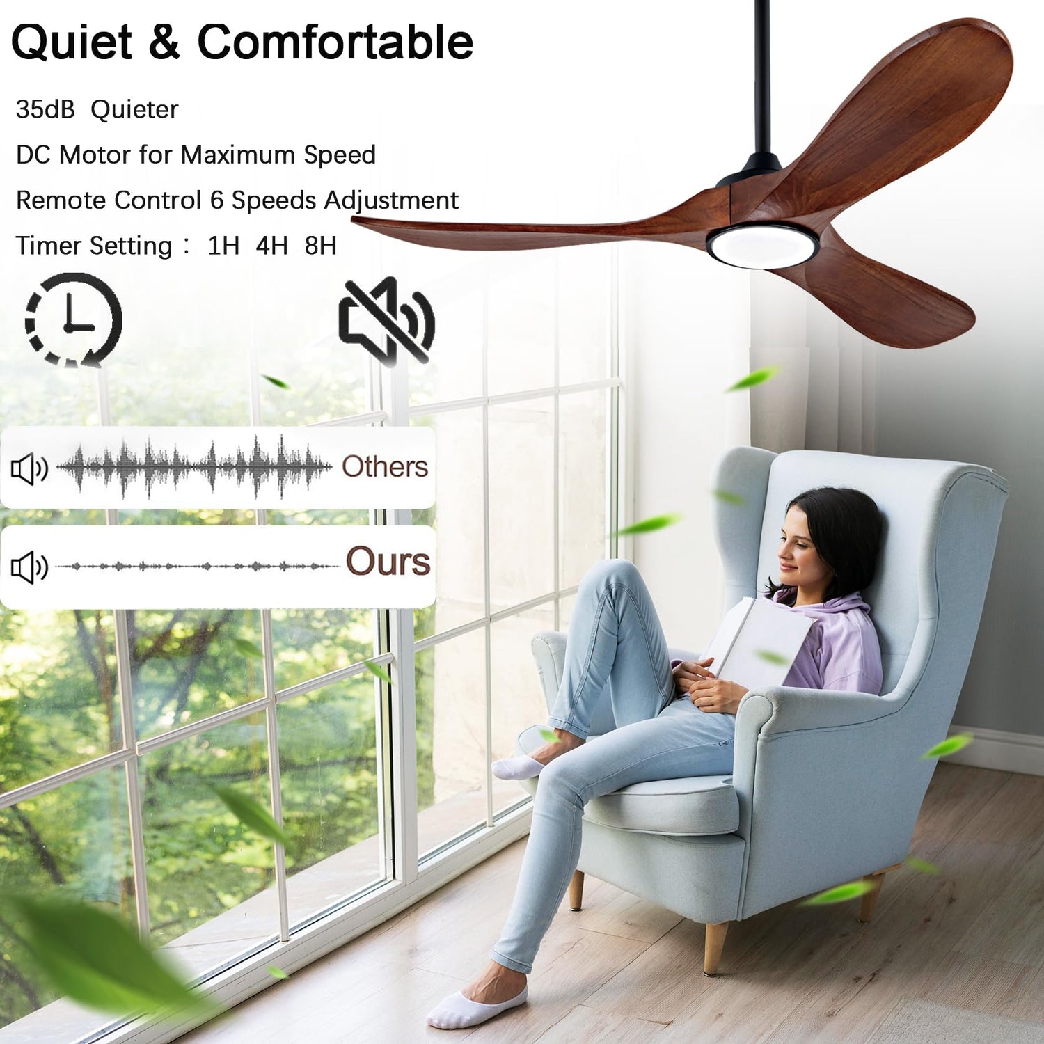 dearnow 52" wood ceiling fan with light with remote control, indoor outdoor wood ceiling fan with 3 wood blades for patio, living room, dining room, pavilion yard, etc (black + walnut)