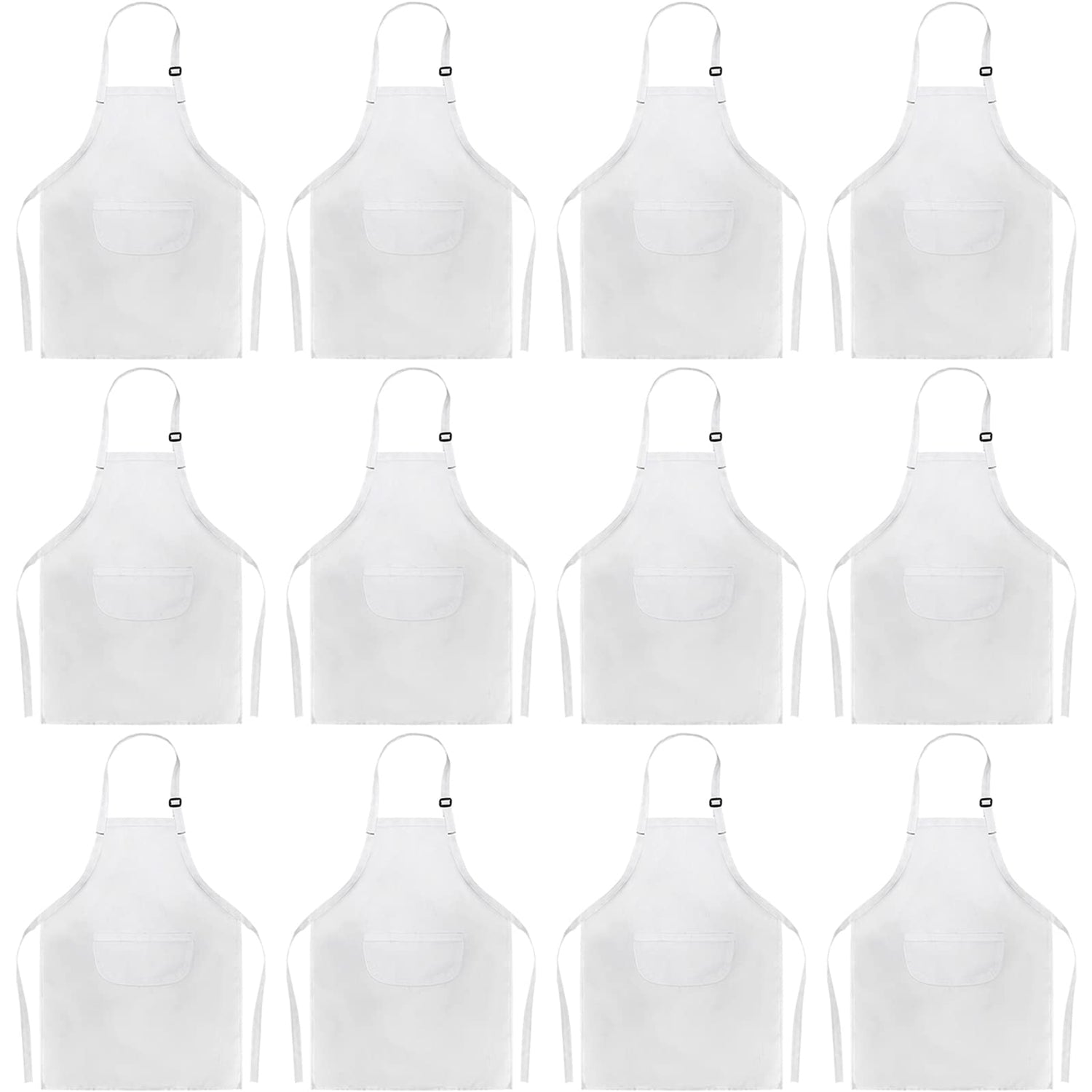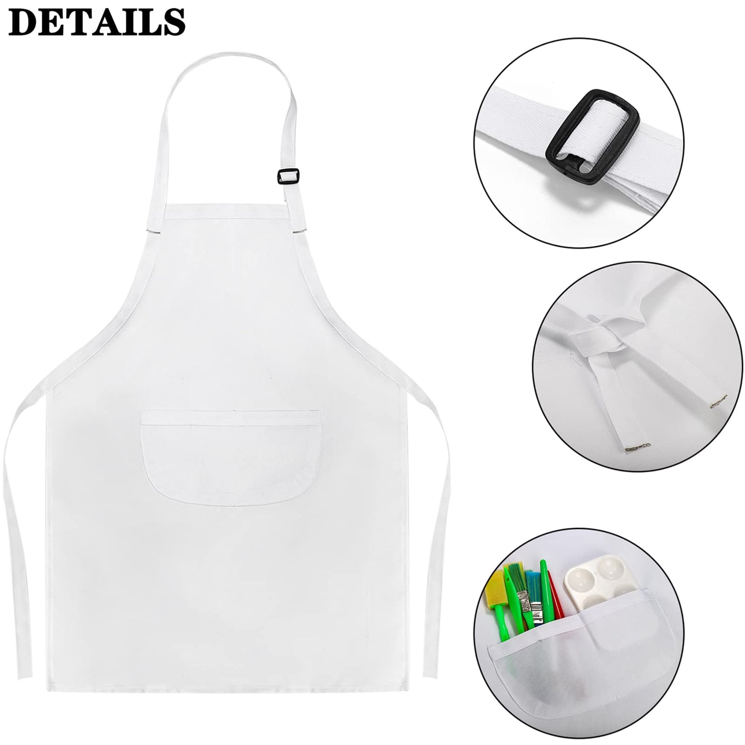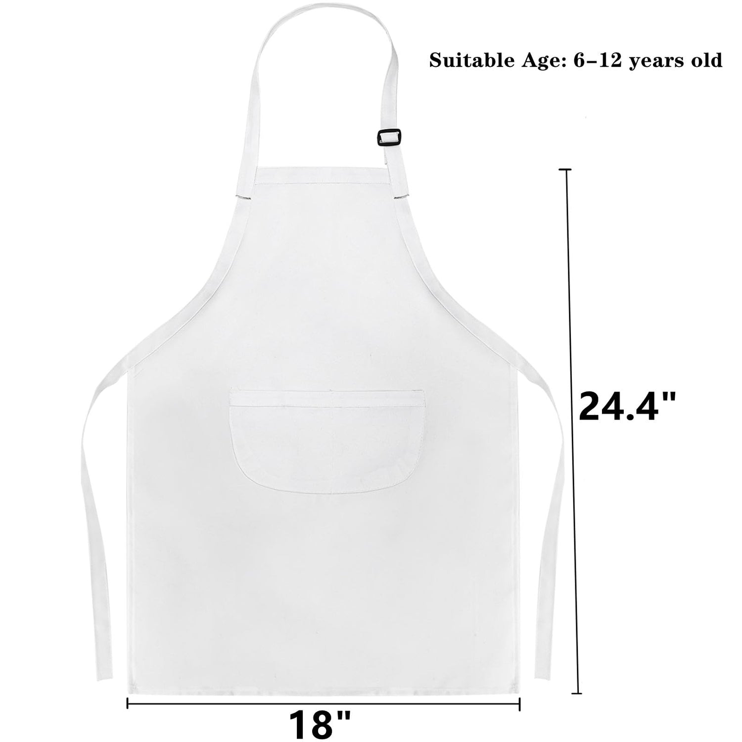- Coming with 12 packs of white child apron with pocket. Each child chef painting apron measures approx. 24.4" L x 18" W, fits for girls and boys ages 6-12 years. Sufficient quantity to meet your various using and replacing needs. Perfect size for most ages of children