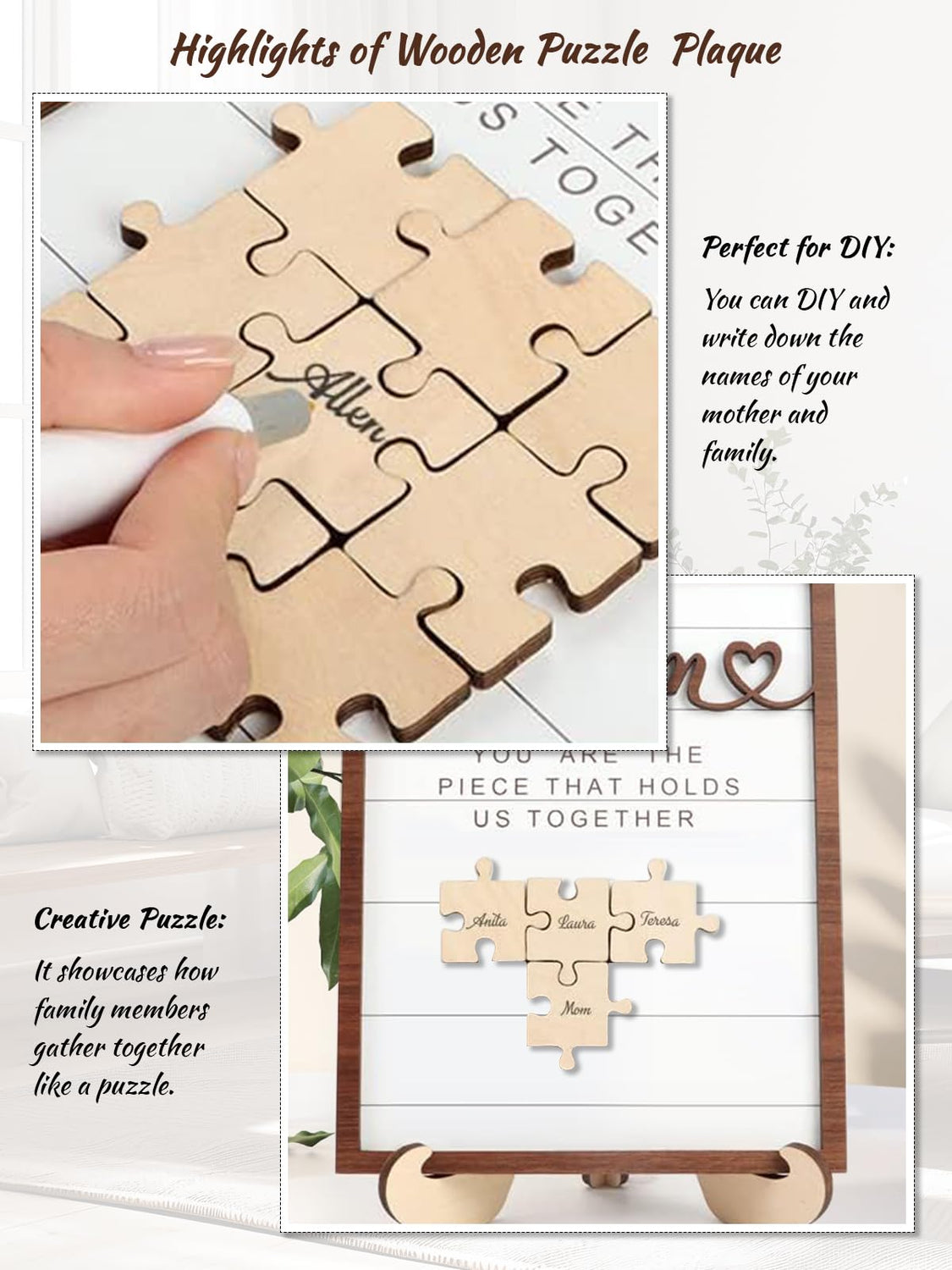 DECEED Mom Puzzle Piece DIY Sign Mother’s Day Puzzle Sign Wooden Table Decor Personalized Mothers Day Puzzle Plaque Gifts, You are The Piece That Holds US Together Customized Puzzle Card