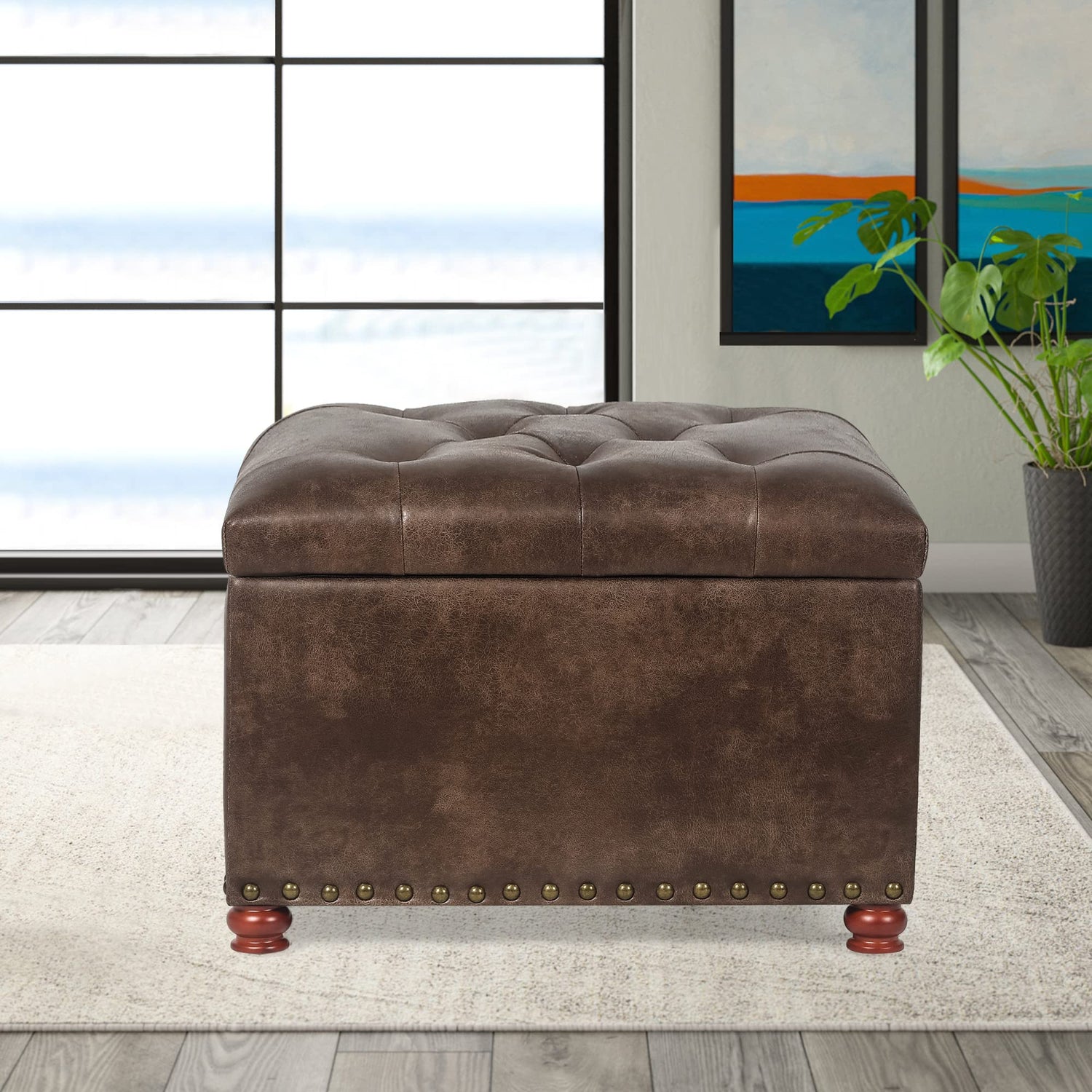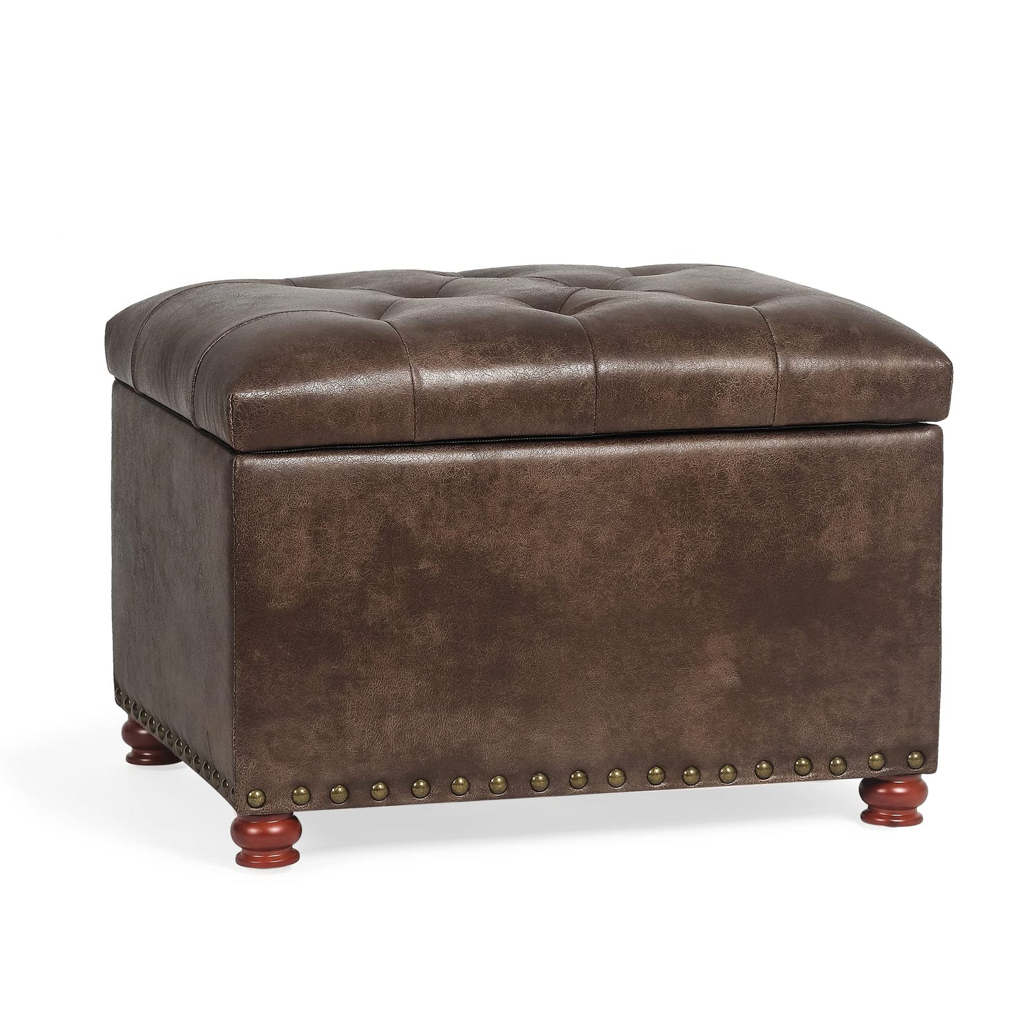 Decent Home 24'' Leather Ottoman with Storage Rectangle Foot Rest Ottomans Stool for Living Room(Brown,Leather Texture)