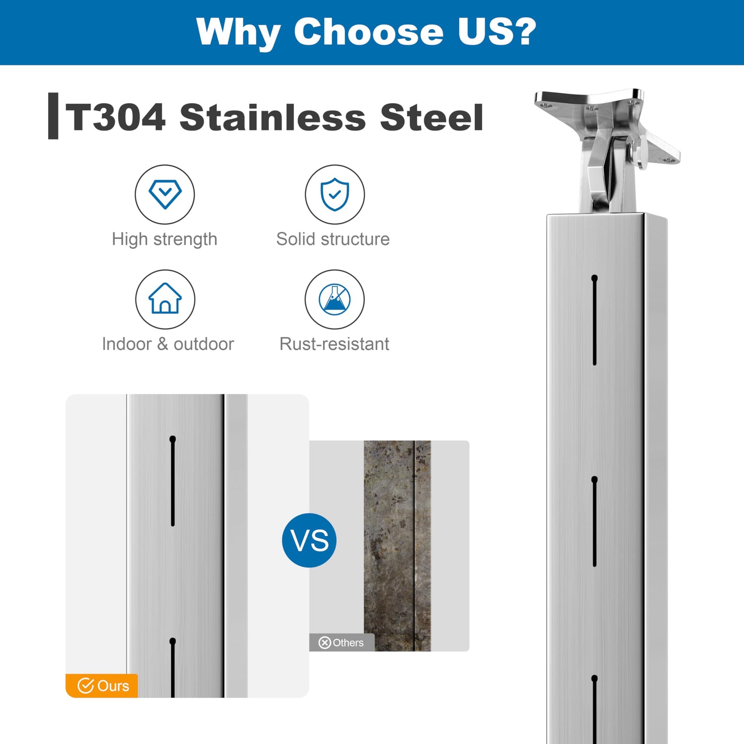- 【High-Quality Material】This cable railing Intermediate post is made from stainless steel T304 with great rust resistance and will work for a long lifetime. It is ideal for both indoor and outdoor applications like decks, stairs, porches, balconies, and fences;