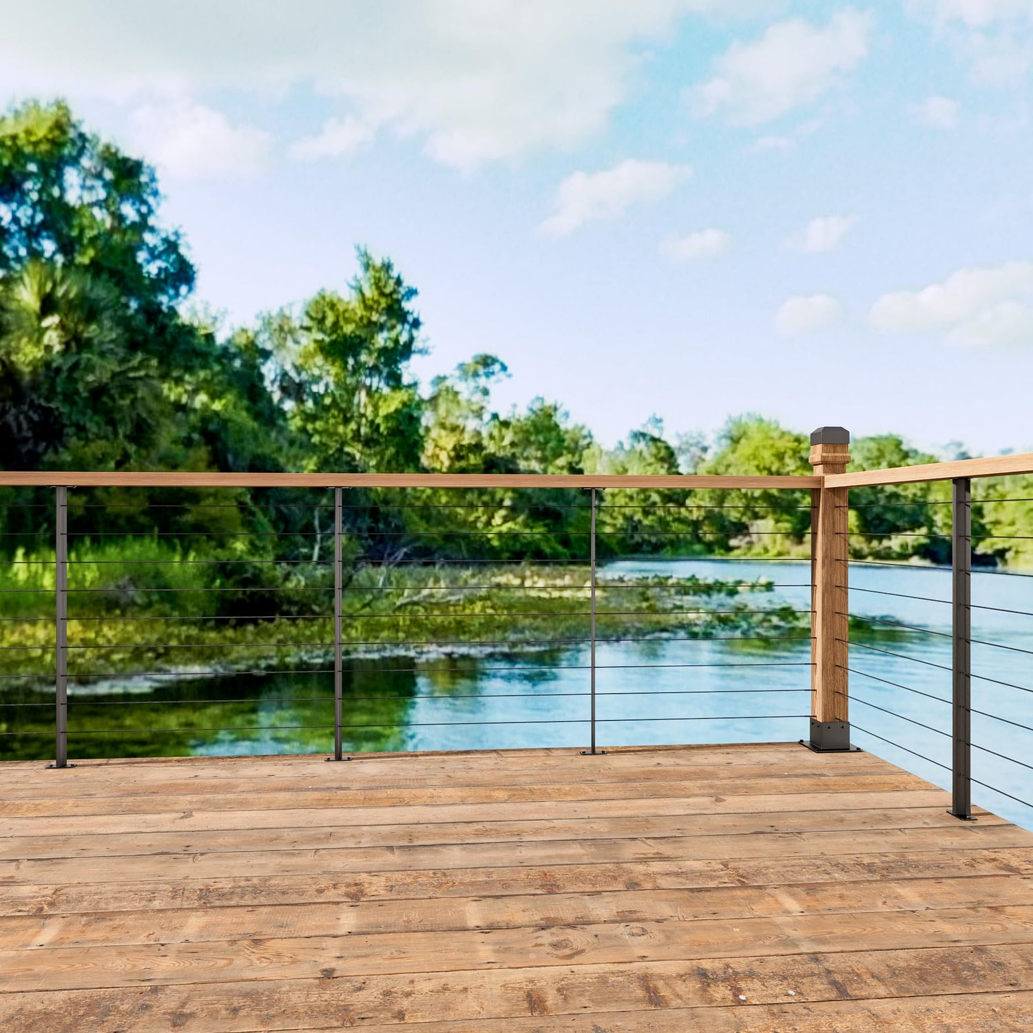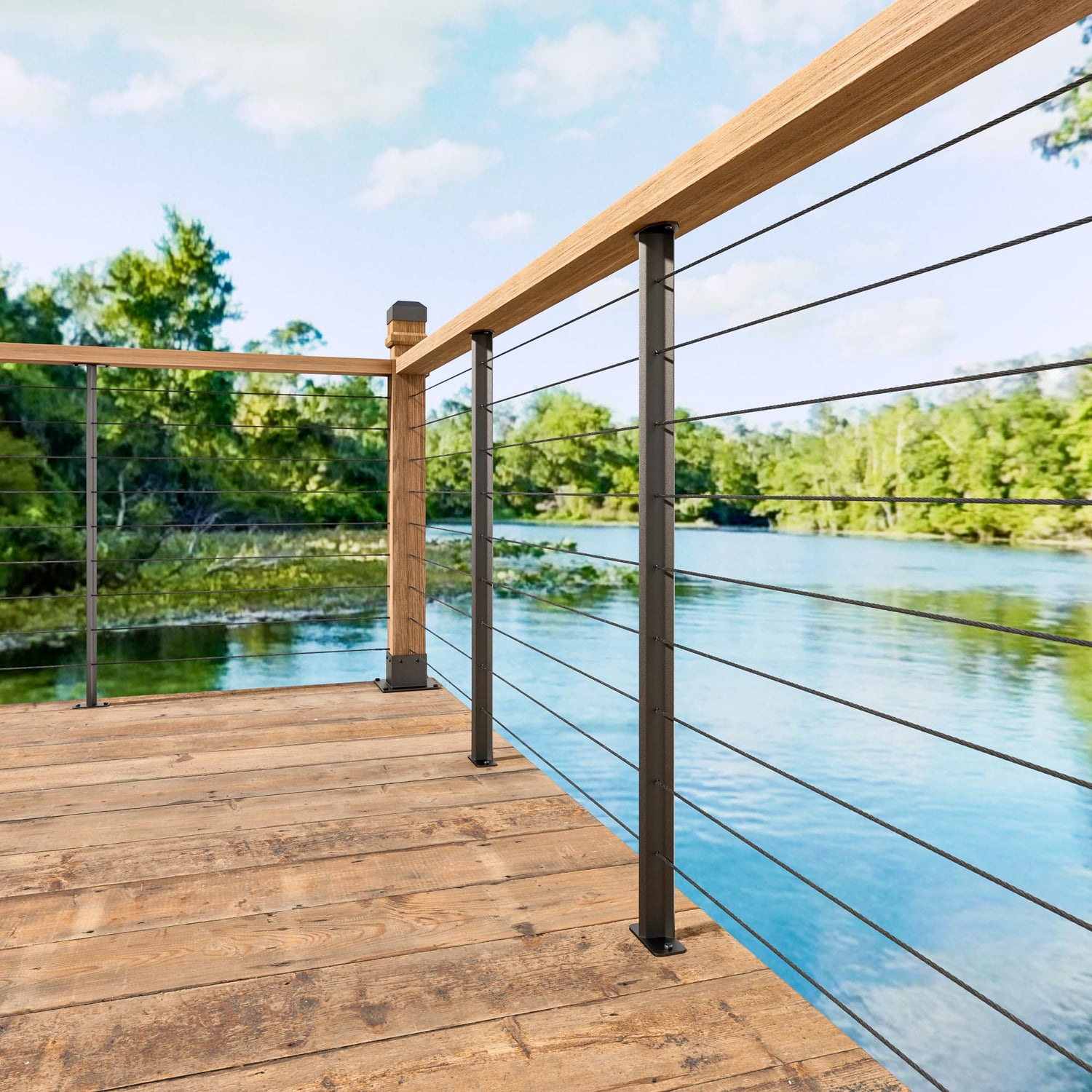 - UNIQUE DESIGN: Our picket body is a folded plate post structure, This structure ensures that the pickets are not easily bent. and This railing picket surface is the natural color of the material which is the same as the cable color. the flat structure of the pickets will provide a pure view after the project is completed