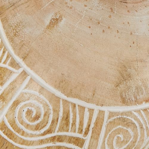 - CREAM AND WHITE MATTE FINISH: These transitional round cream mango wood handmade orbs filler with carved tribal patterns come in a set of two